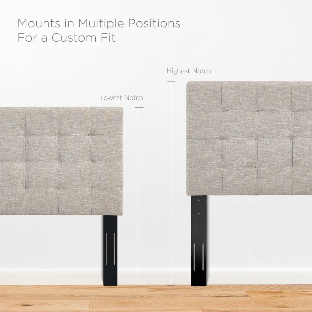 Elevate your bedroom with the Paisley tufted headboard — a refined, upholstered statement piece that blends timeless biscuit tufting and a clean square-pattern design for versatile style. Padded in dense foam and wrapped in soft linen-look fabric, this king/California king headboard provides both visual appeal and comfortable support for lounging, while its adjustable leg mounts ensure a perfect fit for your bed frame and desired height.