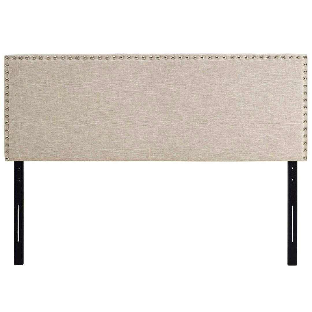 Elevate your bedroom with the Phoebe upholstered queen headboard — a minimalist, contemporary piece that blends soft comfort with refined detailing. Clean lines and a silver nail-button trim create a polished focal point, while thoughtful construction ensures durability and easy installation on queen-size bed frames.