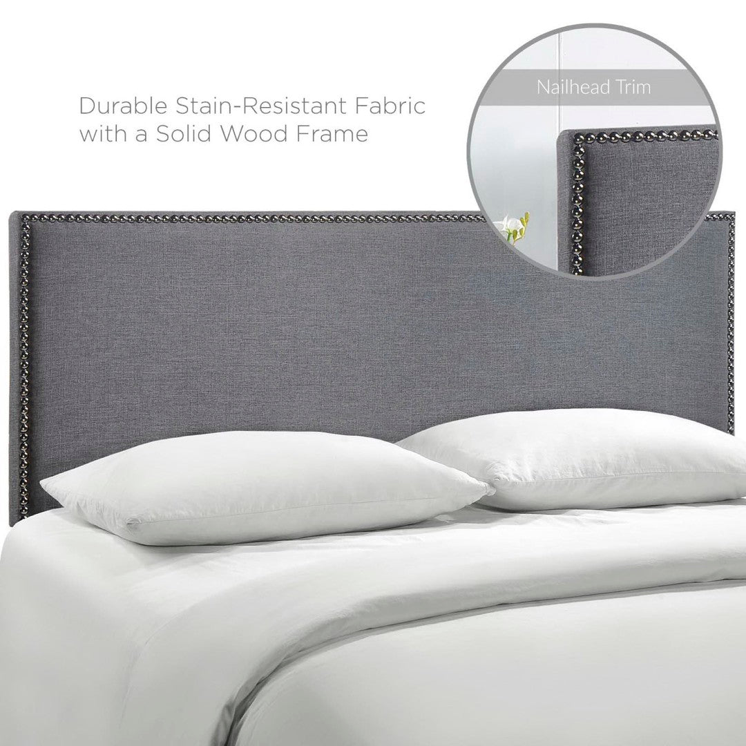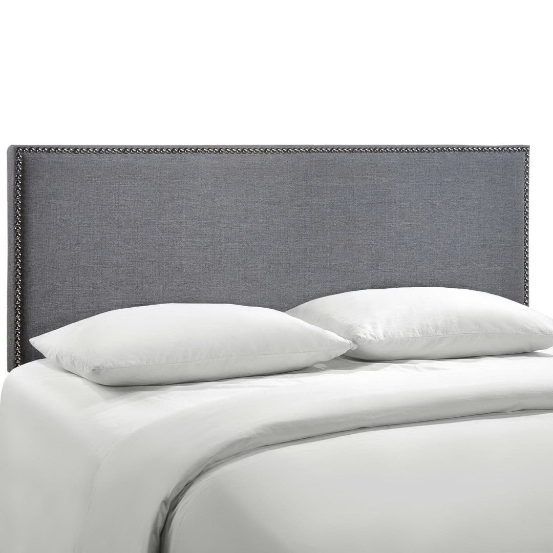 Elevate your bedroom with a clean, contemporary headboard that blends comfort and refined detailing. This upholstered queen headboard features a generous width and a soft linen-like fabric surface framed by subtle nailhead trim, creating a focal point that complements a variety of modern and transitional decors. Built with a sturdy particleboard core and solid wood posts, it’s designed for reliable support and easy mounting to most queen bedframes.