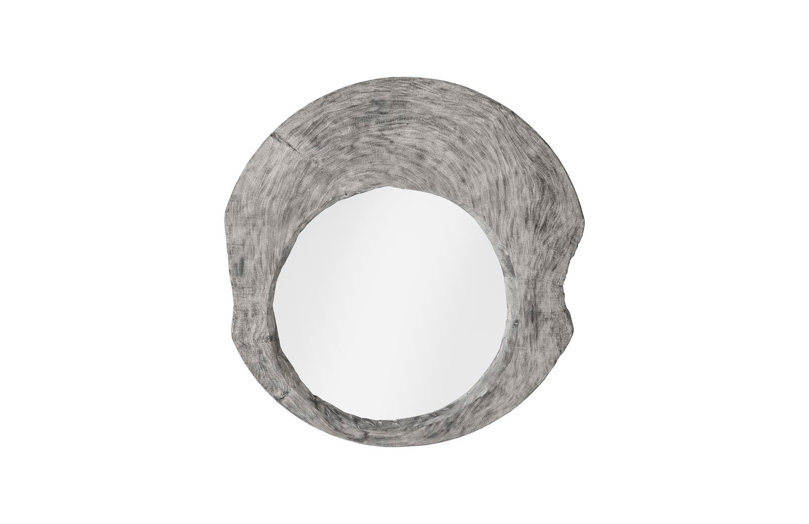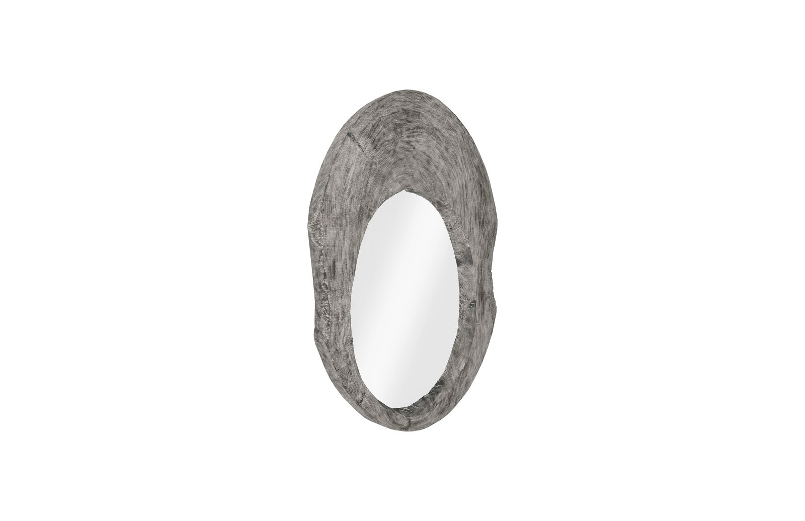 We at Phillips Collection are known for our furnishings in personable woods, including chamcha, a golden acacia that we responsibly source from the jungles of Asia; teak, and mango. We have rescued the reclaimed chamcha wood pieces that make up the frame of the Gray Wood Mirror from being one of nature’s finest castaways by making it into an elemental design statement. One design distinction of note on this decorative mirror is its slight medallion shape. This gray mirror reflects the ethos that Phillips Collection personifies: modern organic.