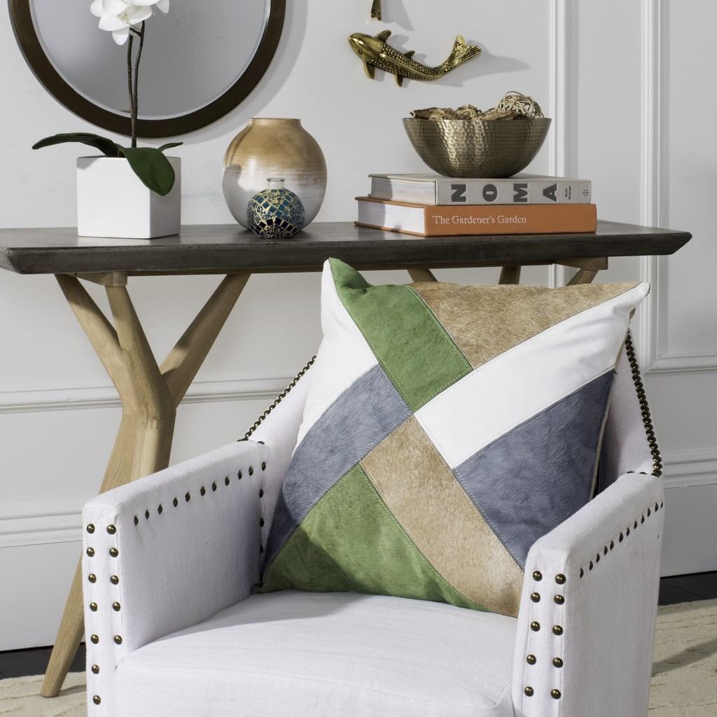 Pillows tend to flatten during transit, but these tips should help you get that pillow into its fluffiest shape quickly! Once unpacked, gently knead the pillow to help loosen the fibers. Throw the pillow in a dryer on a low tumble setting. The most important tip is to include a sock stuffed with a tennis ball to help "beat" the pillow into its fluffy form. Remove from the dryer, and proudly display your new piece of couch art!