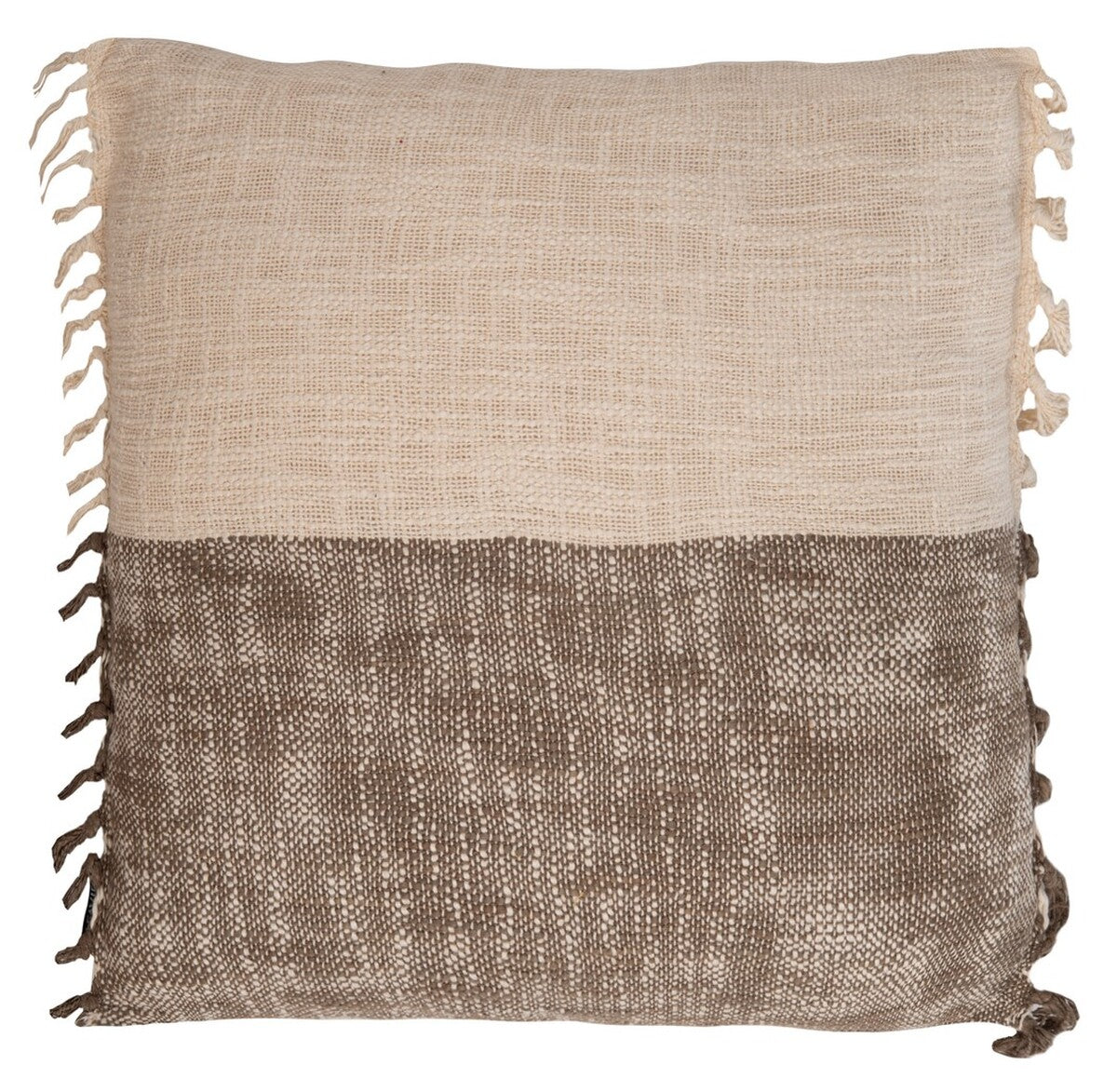 Pillows tend to flatten during transit, but these tips should help you get that pillow into its fluffiest shape quickly! Once unpacked, gently knead the pillow to help loosen the fibers. Throw the pillow in a dryer on a low tumble setting. The most important tip is to include a sock stuffed with a tennis ball to help "beat" the pillow into its fluffy form. Remove from the dryer, and proudly display your new piece of couch art!