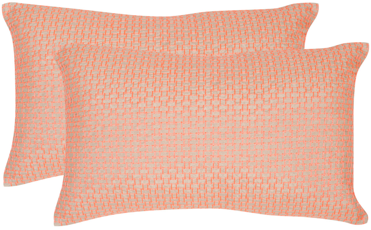 Pillows tend to flatten during transit, but these tips should help you get that pillow into its fluffiest shape quickly!Once unpacked, gently knead the pillow to help loosen the fibers. Throw the pillow in a dryer on a low tumble setting. The most important tip is to include a sock stuffed with a tennis ball to help "beat" the pillow into its fluffy form. Remove from the dryer, and proudly display your new piece of couch art!