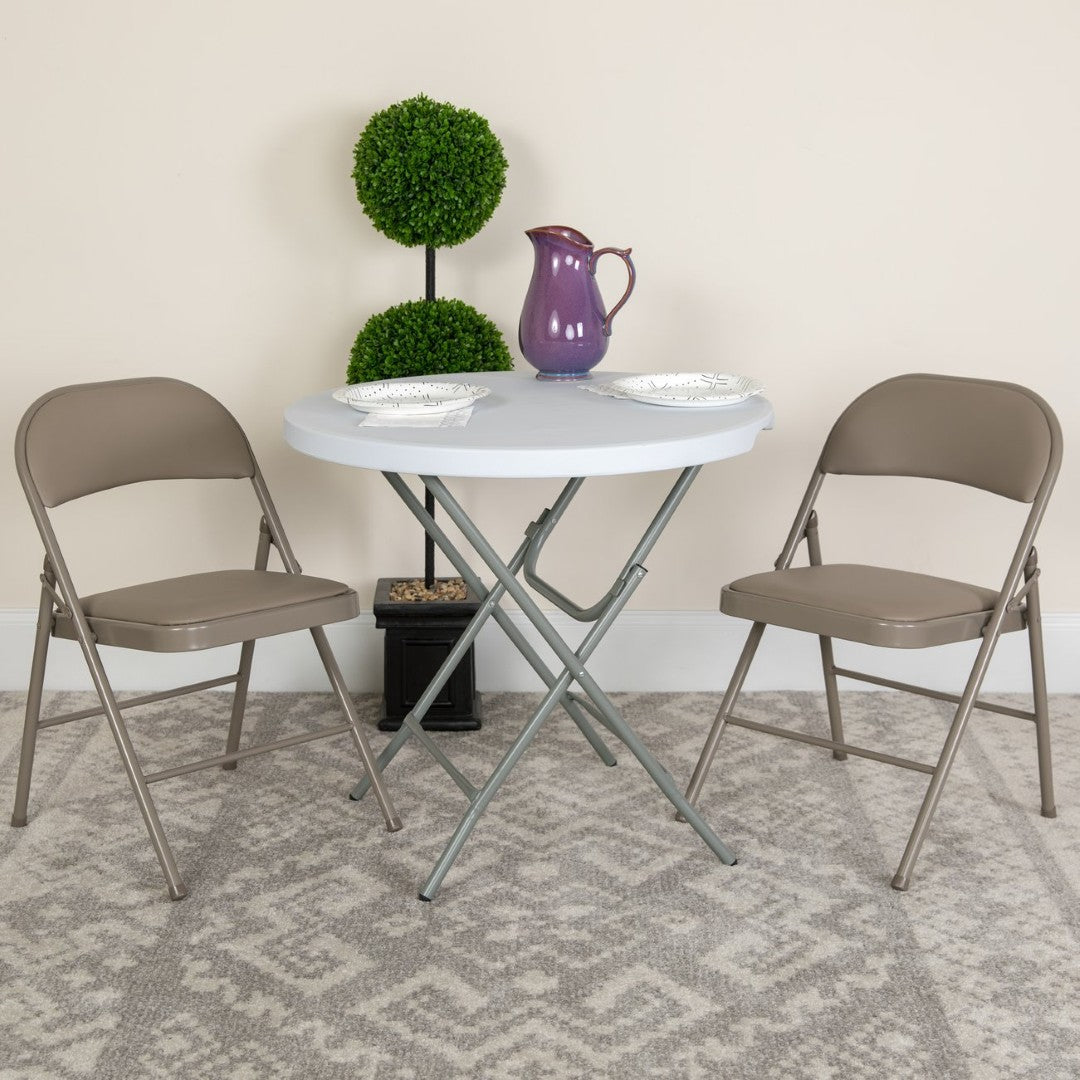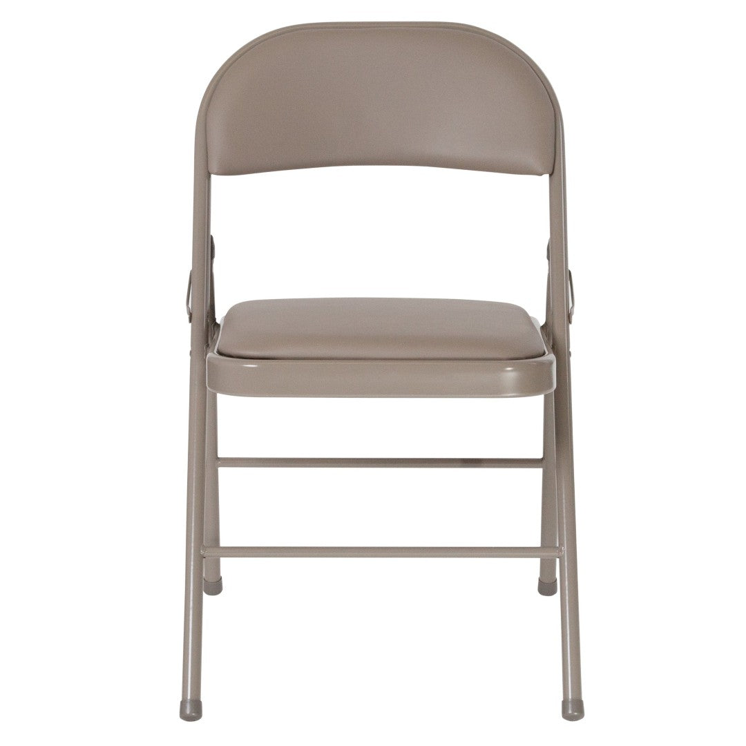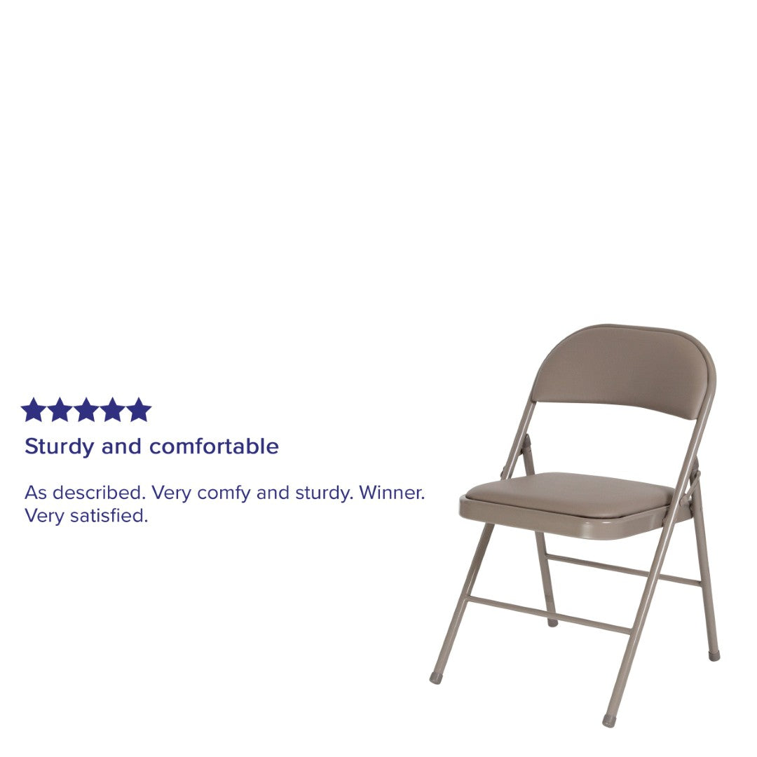 Keep guests comfortable and confident with this durable, easy-care folding chair set — ideal for events, meetings, and extra seating at home. Each chair combines commercial-strength construction with a clean beige vinyl finish for a professional look that’s simple to maintain. Lightweight and portable yet built to hold heavy loads, these chairs fold flat for compact storage and arrive ready to use with no assembly required.