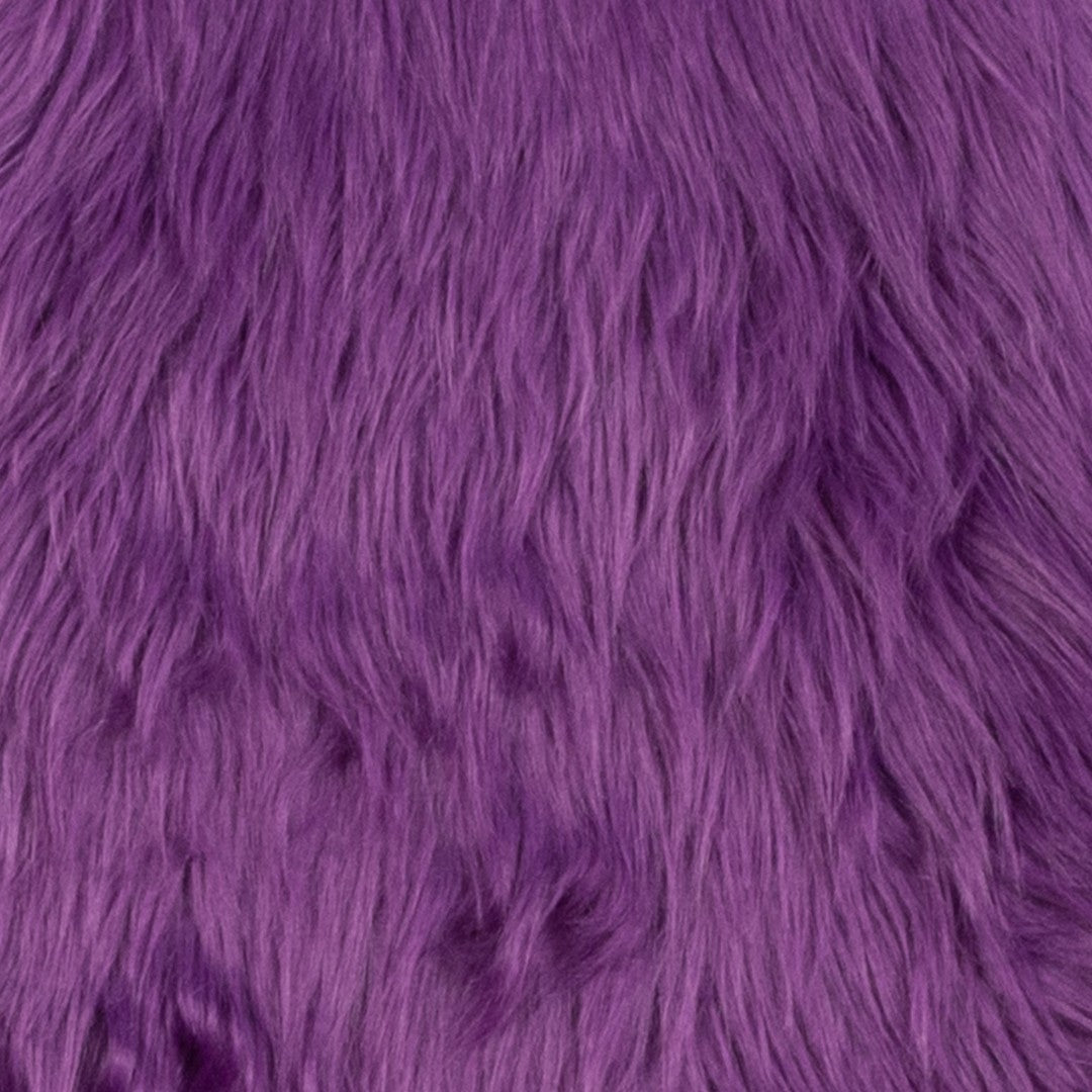 - Upholstery: Purple shaggy faux fur (acrylic) that’s soft, cool to the touch, and vibrant for instant room brightening.