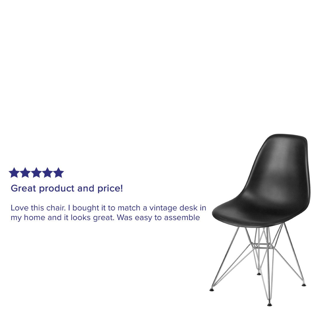 Refresh your space with a sleek, contemporary accent chair that combines sculpted comfort with industrial-inspired styling. The molded matte polypropylene shell cradles the body with smooth contours and a waterfall seat edge to reduce leg pressure, while the geometric chrome base and bracing deliver stable support and a striking visual contrast. Durable enough for commercial settings yet refined for home use, this chair works as a statement piece in living rooms, dining areas, offices, waiting rooms, or creative workspaces.