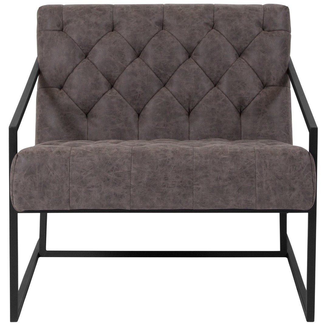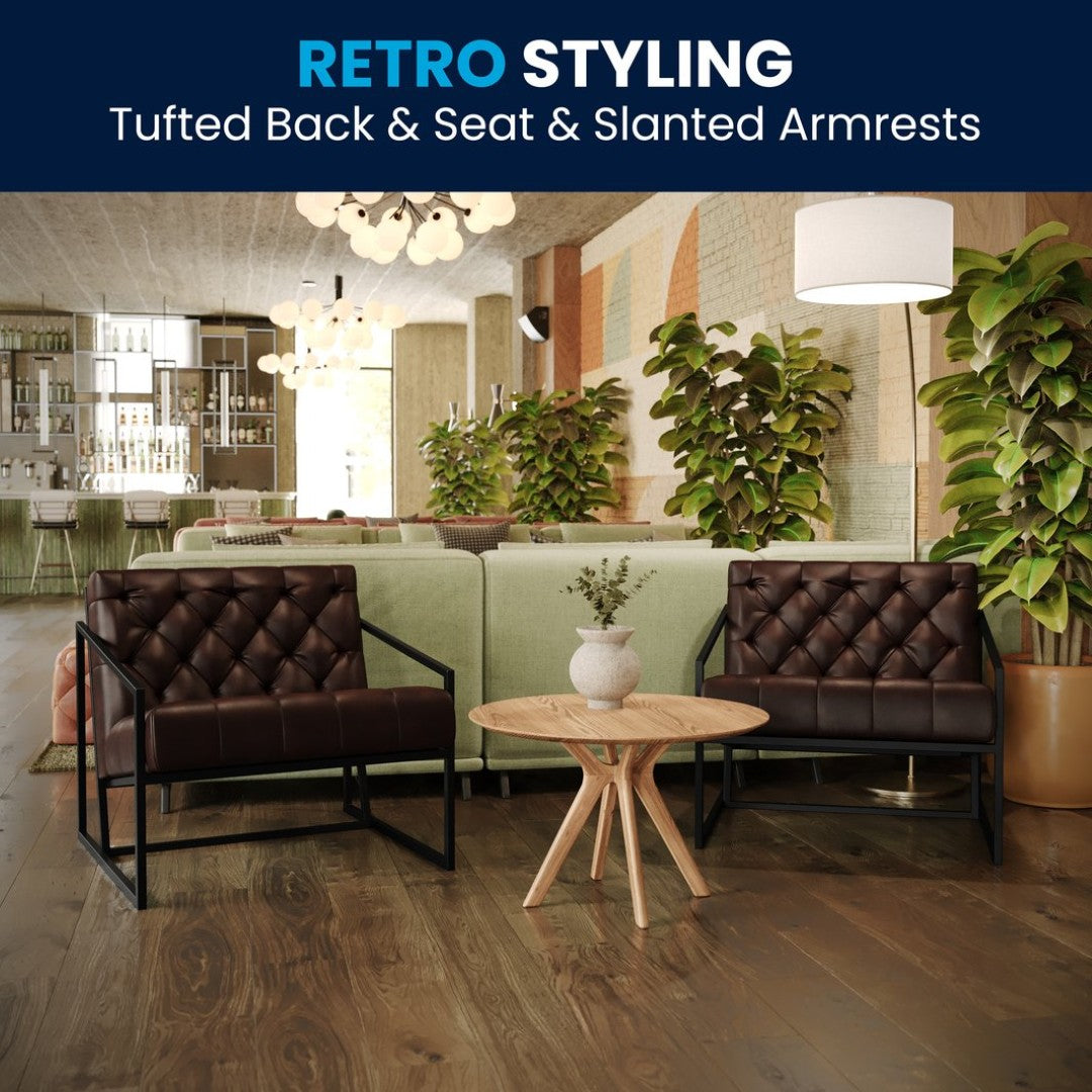 Give your lobby, office, or living room a bold, vintage-inspired focal point with this sculptural lounge chair. Its bomber-jacket style tufting and slanted-arm silhouette combine retro charm with modern durability, delivering comfort and visual impact that works equally well as an accent piece or a reception-seat statement.