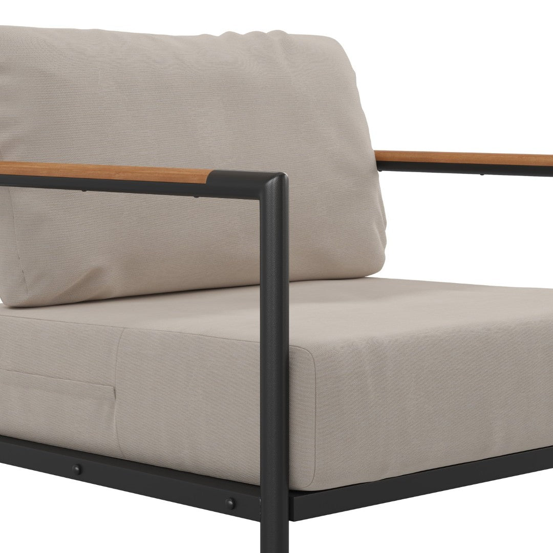- Teak-accented arms: Warm teak details on straight arms provide a natural contrast and a handy surface to rest hands or small items