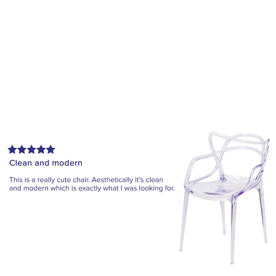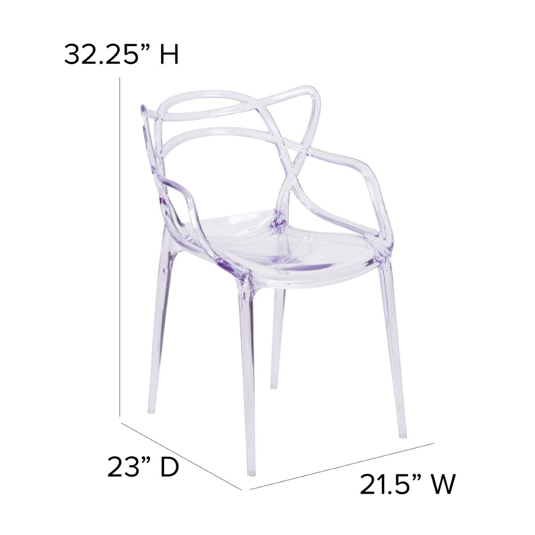 A striking blend of sculpture and seating, this transparent stacking side chair brings contemporary elegance and practical versatility to any space. Its crystal-clear polycarbonate construction creates a lightweight, airy presence while delivering the durability required for commercial and residential use. Ideal for cafes, event spaces, patios, or stylish dining rooms, the chair stacks for efficient storage and offers an ergonomically considerate waterfall seat for comfortable long-term use.