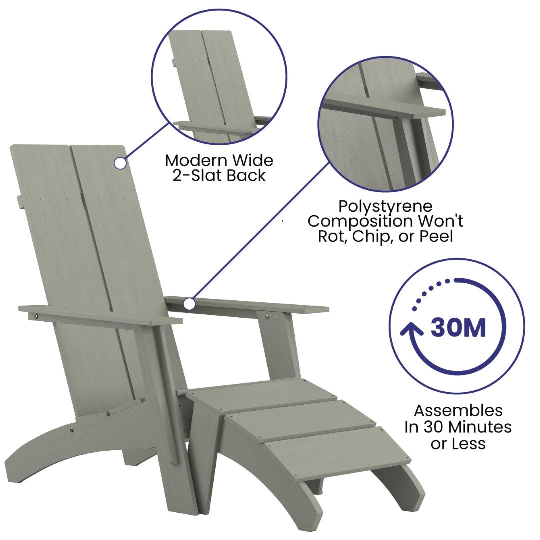 - Set of 2 modern Indoor/Outdoor Adirondack Chairs and Matching Footrests