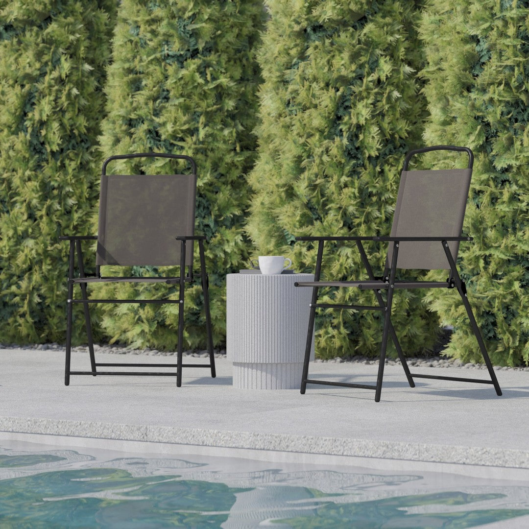 Create a comfortable, low-maintenance seating area instantly with this set of two folding patio sling chairs. Built for easy use and all-season outdoor enjoyment, these chairs combine breathable Textilene fabric with a durable, rust-resistant steel frame to deliver cool, supportive seating that stores and transports with minimal effort.