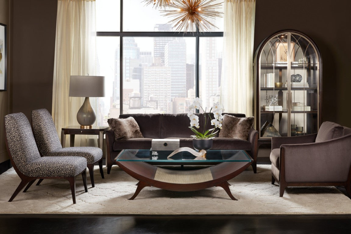 Add a touch of modern elegance to any room with the Bella Slipper Chair. Its streamlined silhouette, plush tight seat and back, and gracefully curved wood-framed back combine comfort and refined style—ideal as a pair in the living room, a statement dining host chair, or a single accent piece. Upholstered in rich Merrimac Ebony fabric and finished in Caviar over Cathedral Cherry veneers, this chair delivers a polished, transitional look that complements a variety of interiors.