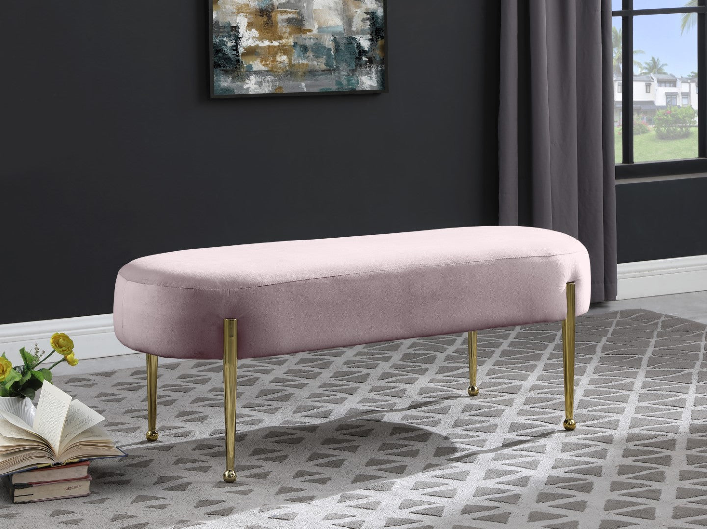 - Material: Velvet / Engineered Wood / Metal / Foam