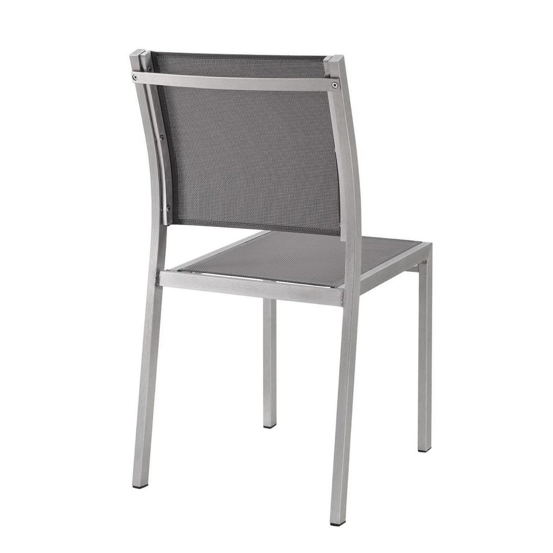 - Modern Outdoor Dining Side Chair Breathable Textilene® Mesh Woven PVC Coated Polyester Anodized Aluminum Frame Non-Marking Foot Caps