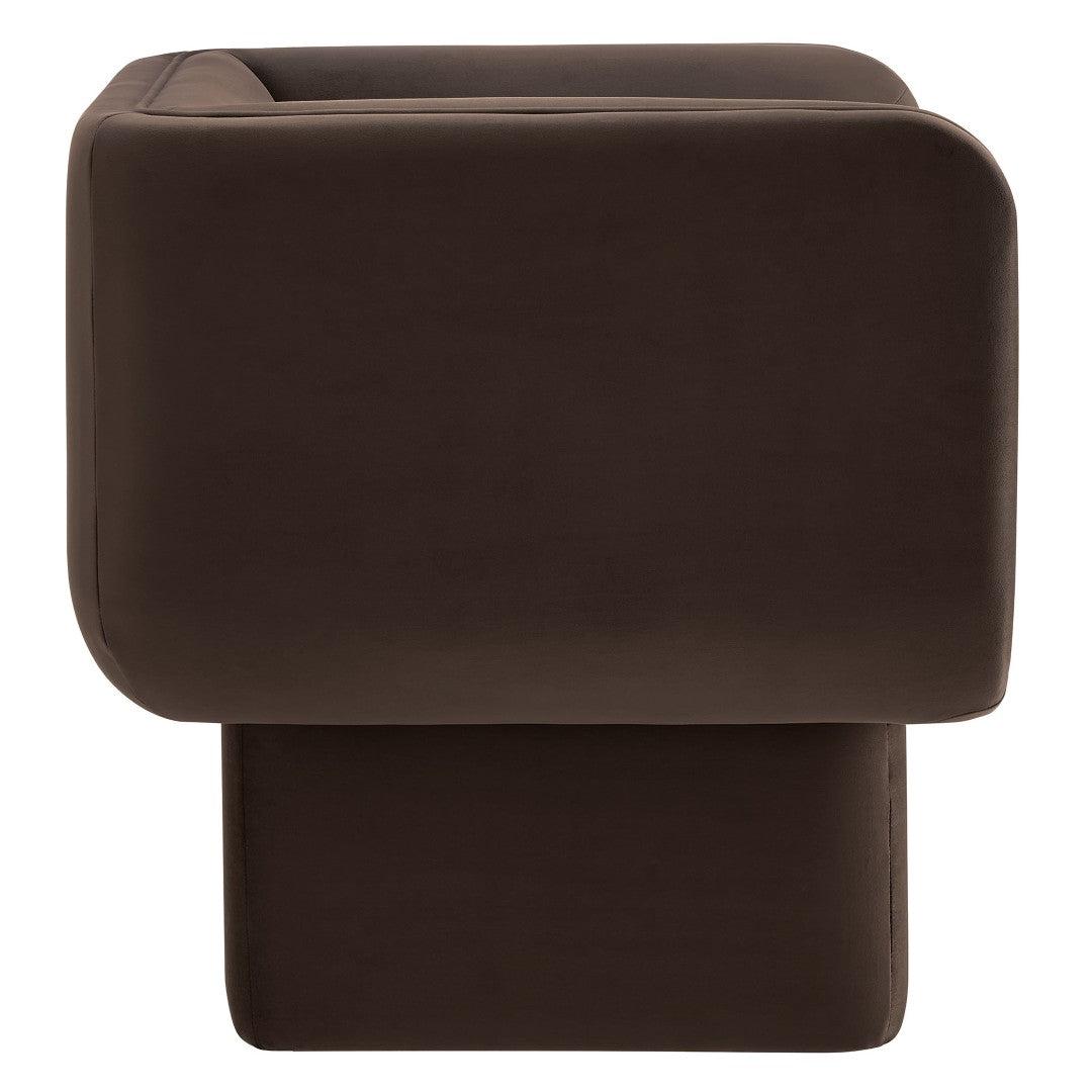 Bring contemporary flair and everyday comfort to any room with this Tate Performance Velvet Accent Chair. Upholstered in luxurious stain-resistant performance velvet, the barrel-style silhouette and square arm details create a refined yet cozy seating option ideal for living rooms, bedrooms, or home offices. Thoughtful construction—fixed seat and back cushions, French piping, and a sturdy wood frame with protective foot pads—ensures lasting shape, supportive comfort, and easy placement on floors. Assembly is required.