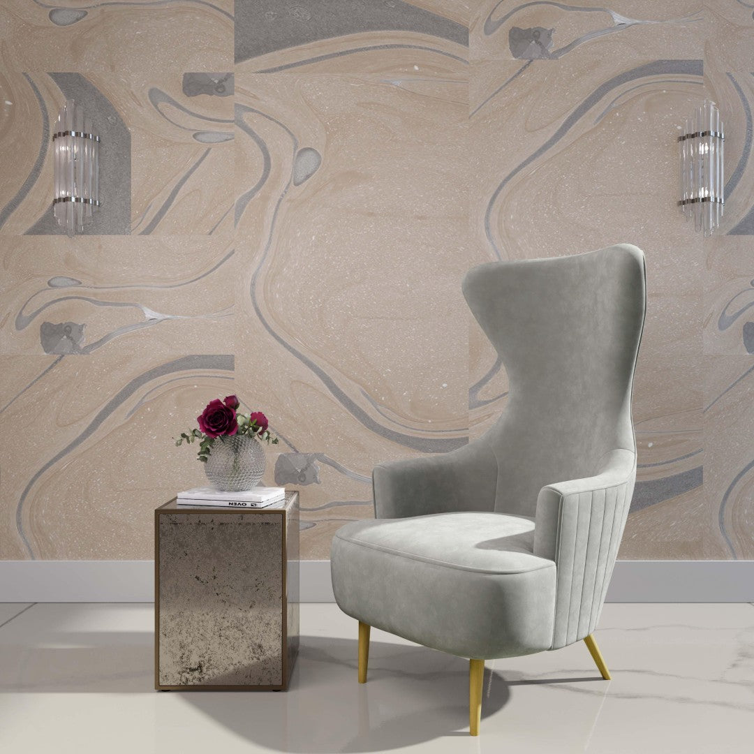 - Luxurious velvet upholstery in a soft cream tone for a sophisticated, tactile finish