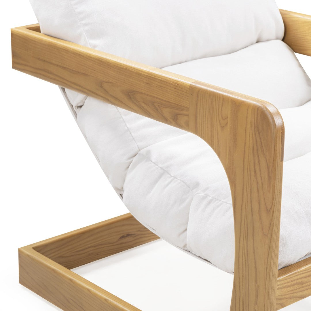 The Palma Accent Chair blends retro cantilever styling with contemporary comfort to create a versatile statement piece for living rooms, reading nooks, or lounge areas. Its slung, padded seat conforms to your body for relaxed lounging or upright support, while the solid ash frame and durable upholstery ensure long-lasting performance and refined aesthetics.