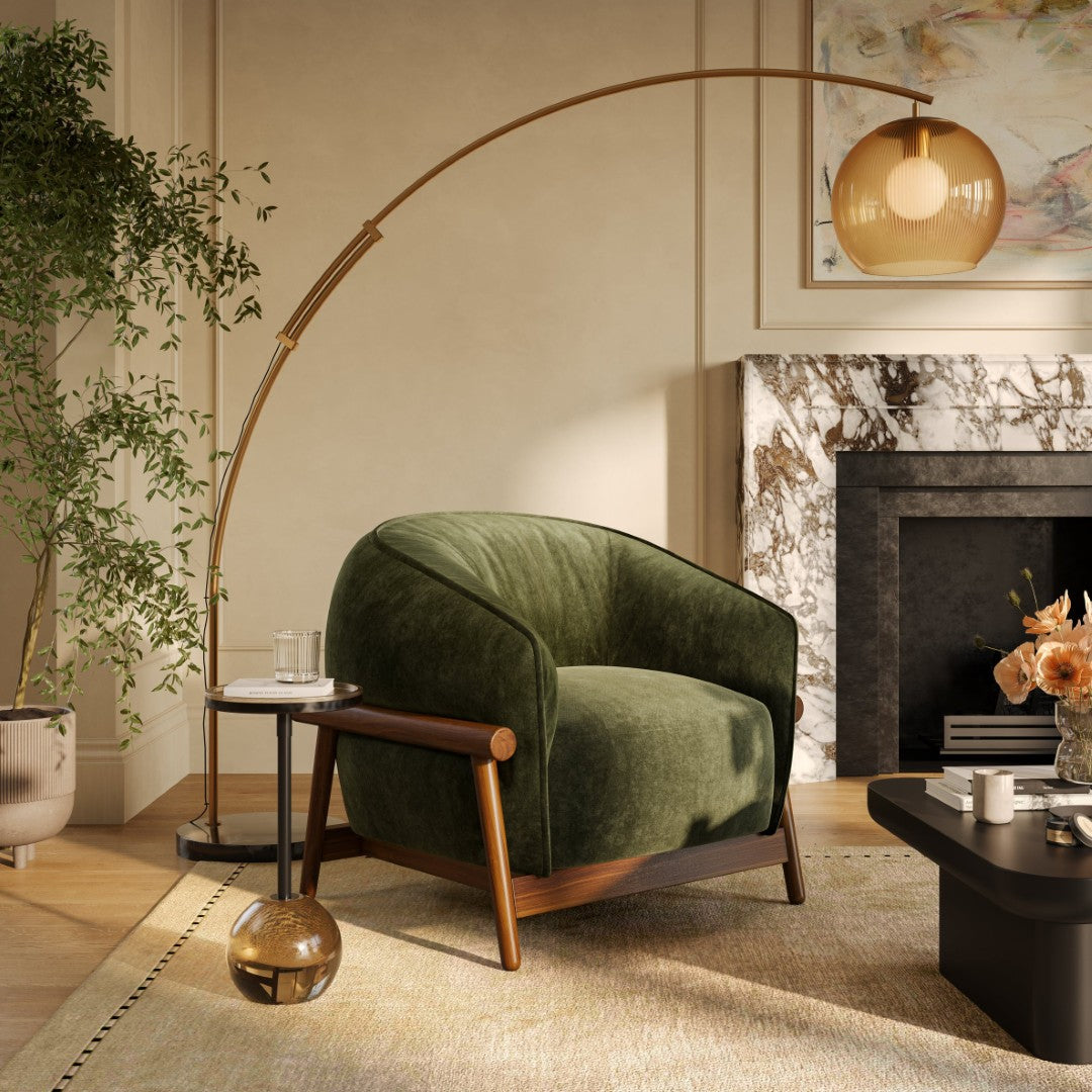 Sink into the inviting comfort of the Piedmont Upcycled Chenille Accent Chair ” a thoughtfully designed piece that blends sustainable materials with refined, modern styling. Upholstered in richly textured chenille crafted from upcycled fibers, this chair delivers plush support and a tactile presence that complements both contemporary and transitional interiors. Exposed ash wood framing in a walnut finish adds warmth and structural interest, while high-quality, contract-grade construction ensures durability for residential or commercial settings. Available in green or taupe, the Piedmont Chair is an eco-conscious way to elevate a living room, reading nook, or lounge area.