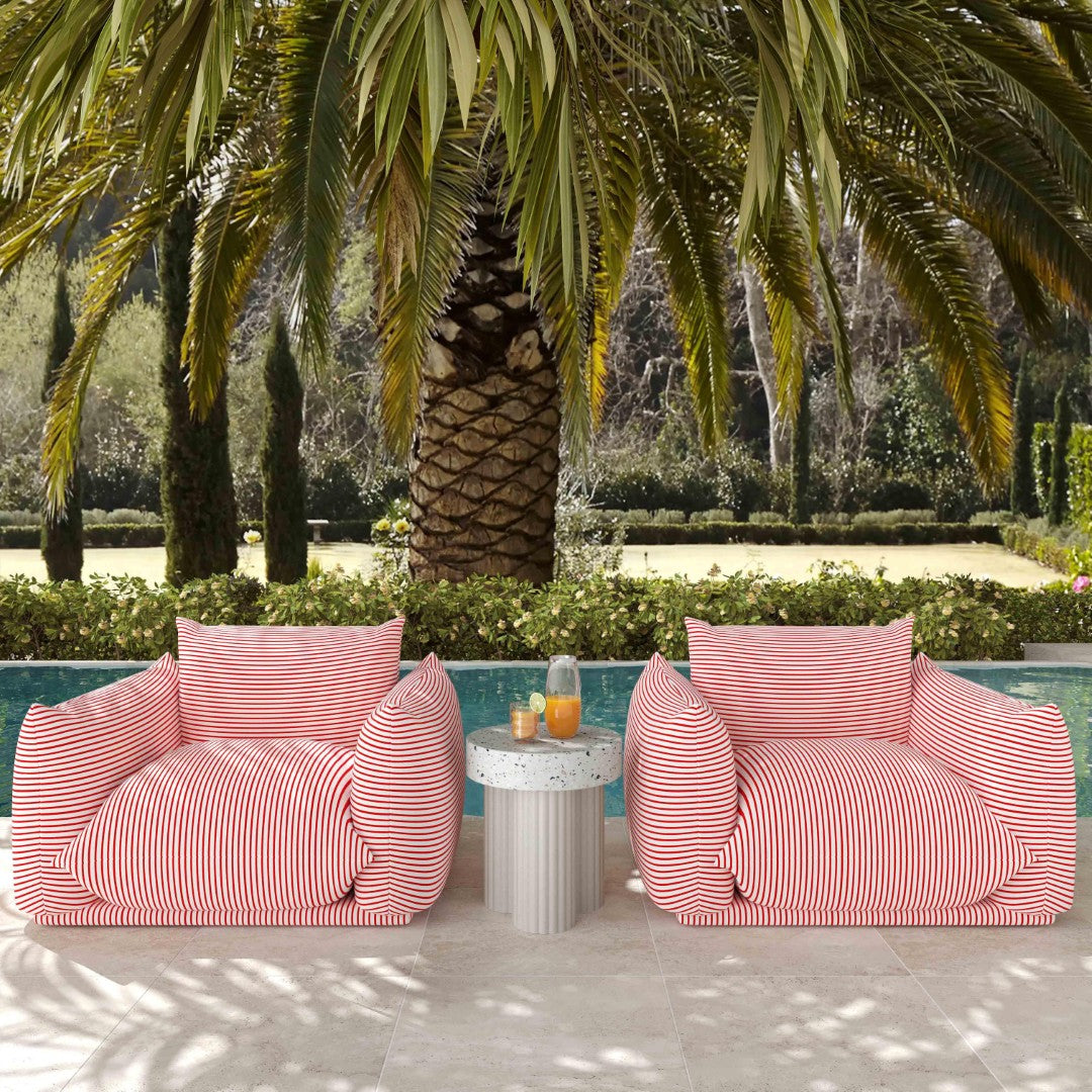 Bring playful, durable style to your indoor or outdoor living areas with this striped stuffed armchair inspired by the Saint Tropez collection. Its pillowy silhouette and bold stripe pattern create a standout focal point while the outdoor-grade performance fabric and sturdy construction deliver lasting comfort and weather-ready functionality”perfect for patios, sunrooms, or a colorful accent in any room.