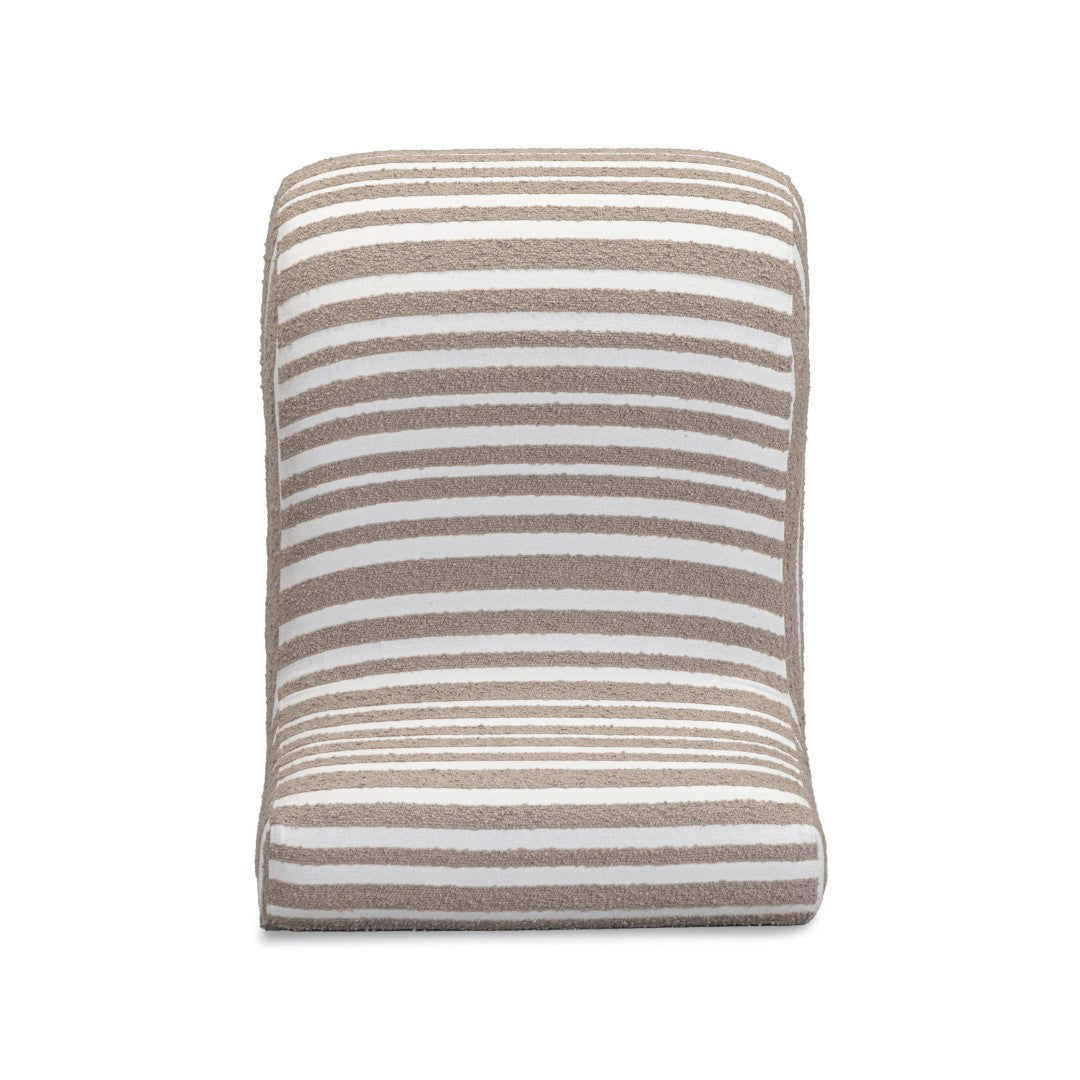- Upholstery: Durable, contract-grade jacquard fabric in a soft taupe stripe; textured weave adds subtle pattern and elevated visual interest