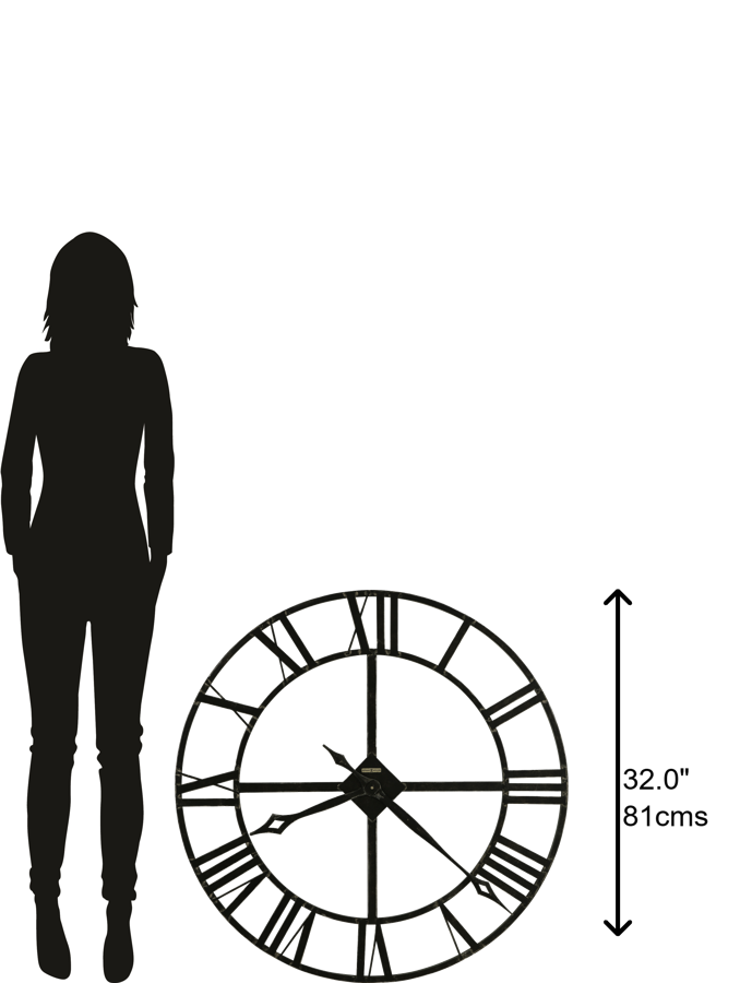 - Timeless Style: An extraordinary addition to the home, this striking iron wall clock defines timeless beauty. With its rich, dark hue, open workmanship, and dramatic size, it evokes the character of a true statement piece. Placed on a blank wall, it instantly breathes new life into any space, be it a bedroom, a living room, or an office. Durable Design: This large wall clock is built to last, with durable elements designed to stand the test of time. The wrought iron configuration lends it unwavering sturdiness, while magnetizing aesthetic elements, like oversized Roman numerals in dark chocolate gray and silver edging, lend the piece a certain old-world appeal. The design is finished with a complimentary hour and minute hands, replete in vivid charcoal gray tinged with silver. Quartz Movement: The quartz, battery-operated movement requires 1 AA battery (not included). Howard Miller: Founded in 1926 and still family-owned in its third generation, Howard Miller is the world&rsquo