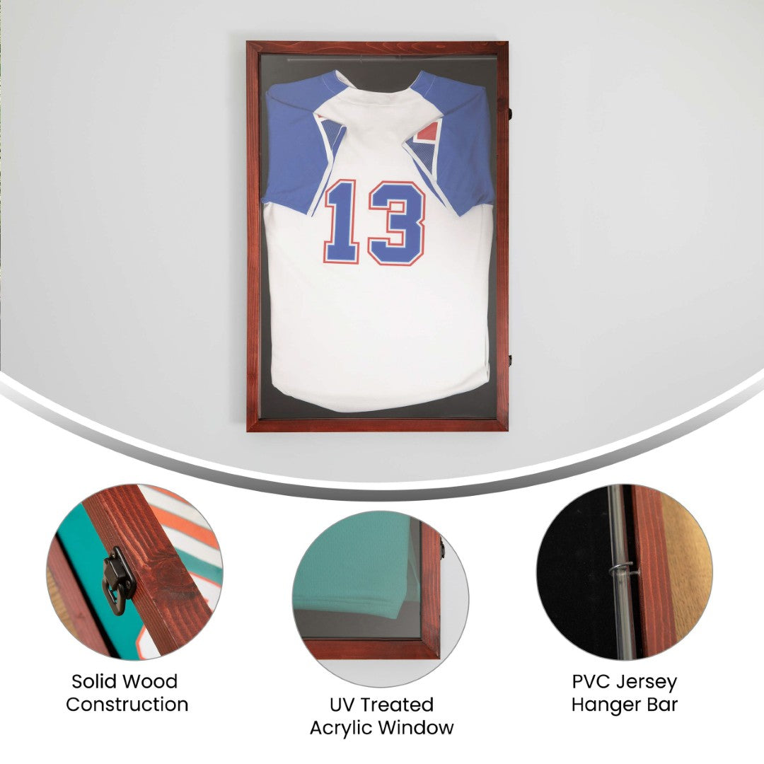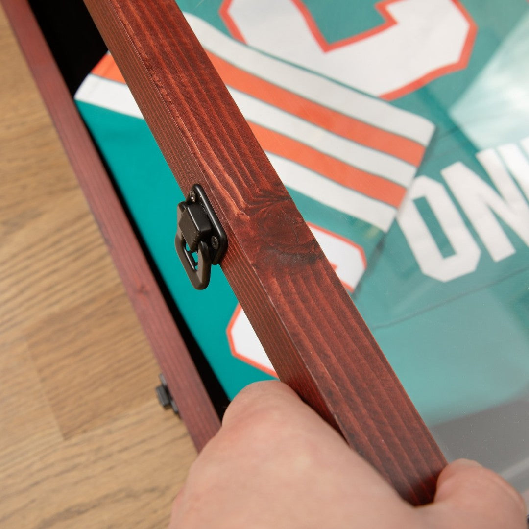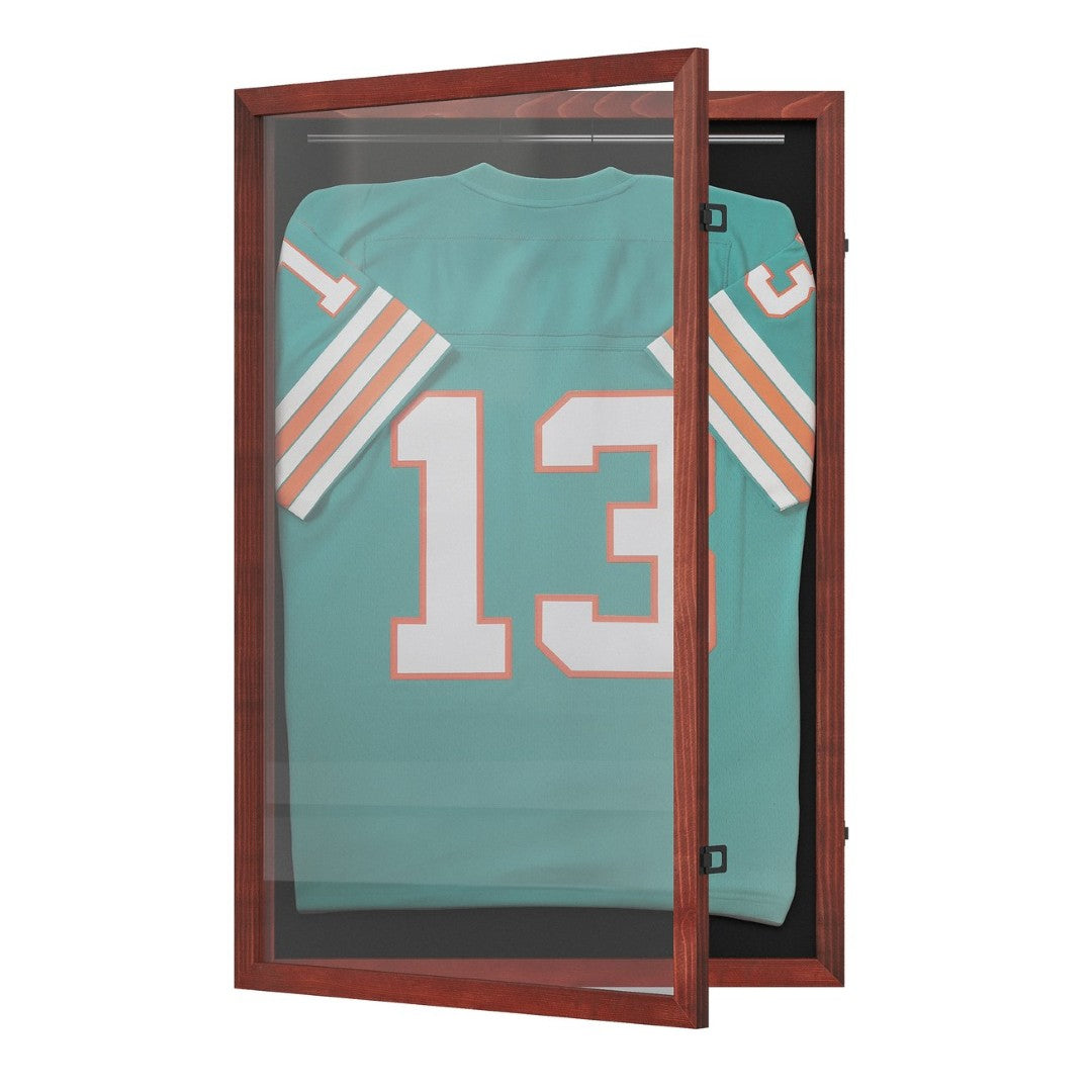 Showcase your favorite jerseys with a museum-quality display that protects and presents each piece with care. This solid pine frame combines classic styling with practical features—UV-protected acrylic, velvet backing, and an anti-theft lock—so your memorabilia looks great on the wall and stays secure. Ready to hang with included hardware and easy-to-follow instructions, the case is ideal for professional uniforms, youth team jerseys, or any collectible garment you want preserved and admired.