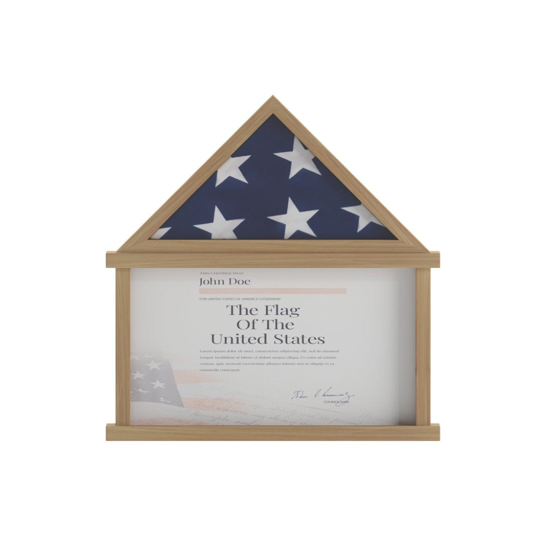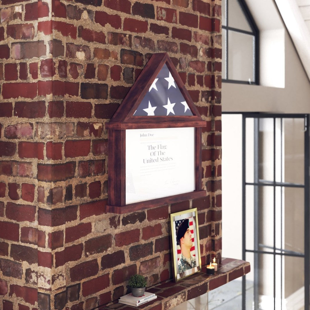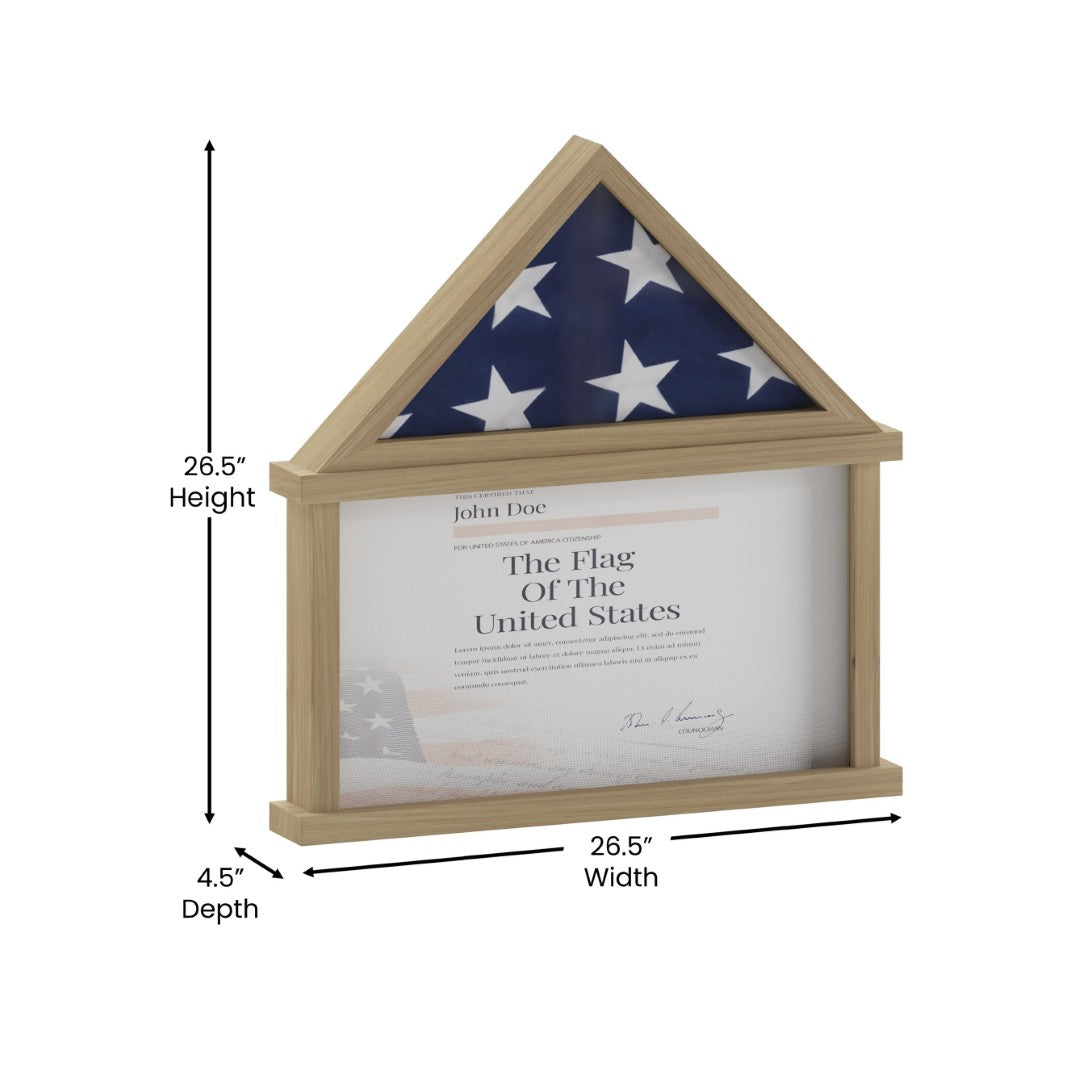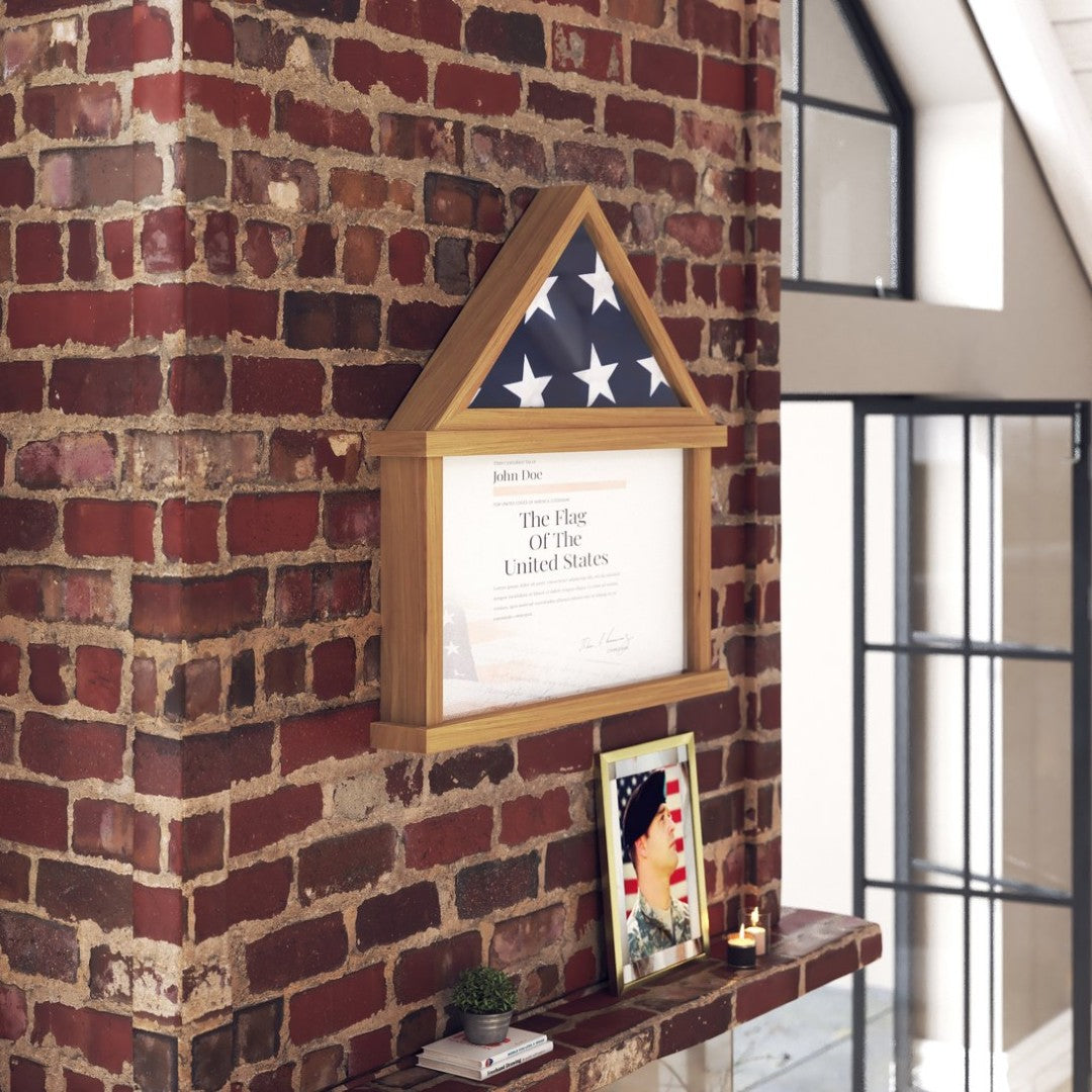 - Flag Capacity: Upper triangular shadow box sized to hold a standard 3" x 5" folded flag; includes folding instructions for correct presentation.