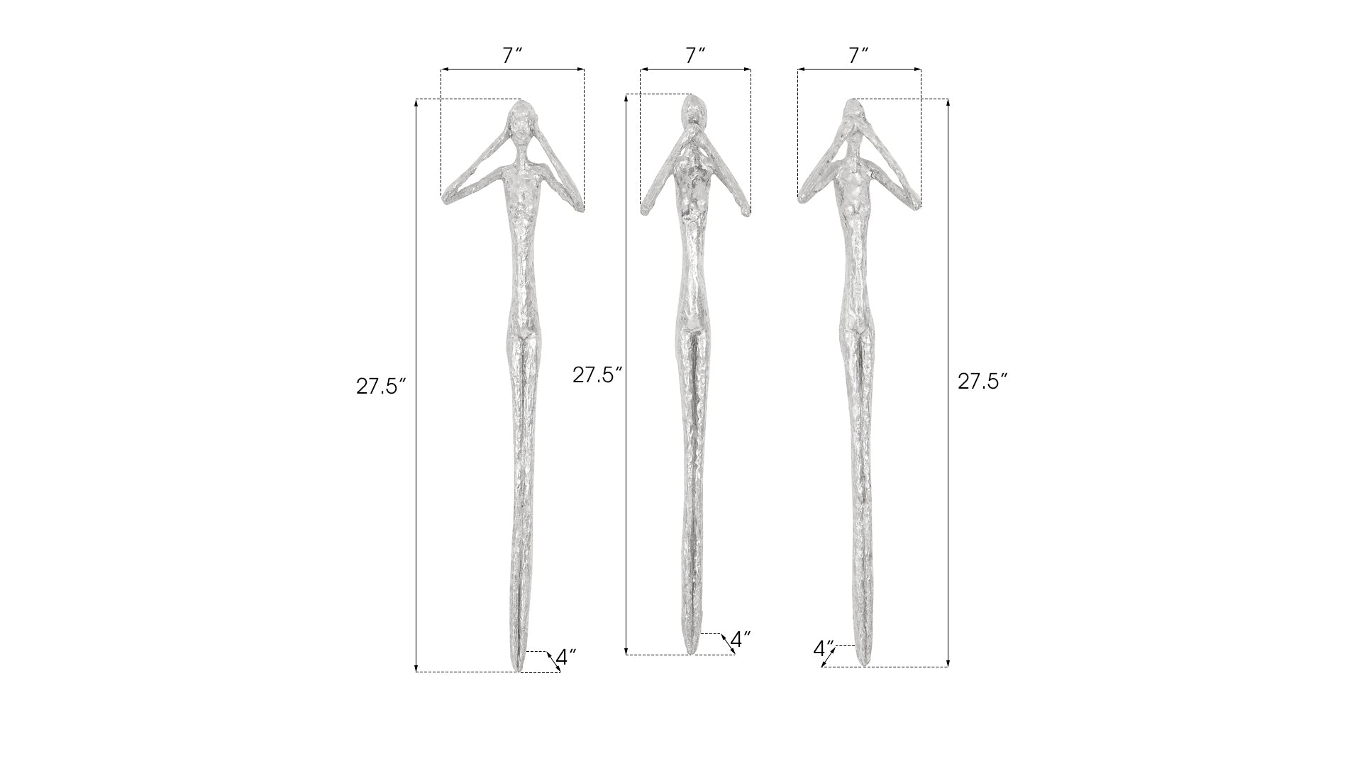 Thin is in, as the saying goes, which means the See, Hear, Speak No Evil Silver Wall Art Set will be a remarkably popular decorative accessory in any décor style. Designer Raymond Waites has created this family of decorative sculptures, one of our most popular collections. The pared-down sculptures are cast in composite and finished with silver leaf to make them feel like metal. We also offer the wall art set in a bronze finish. Each of these reflects the ethos that Phillips Collection personifies: modern organic.