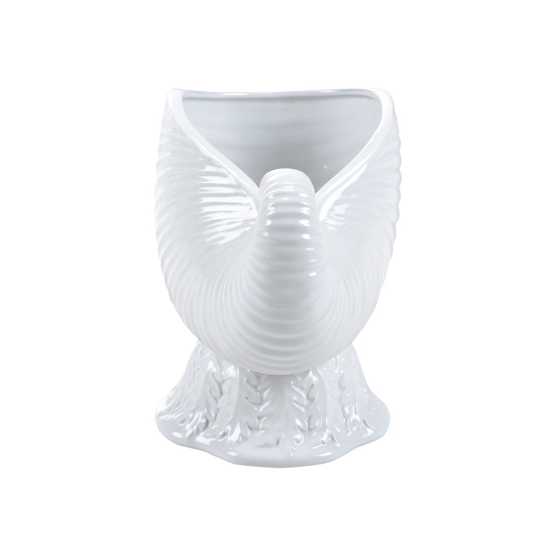 Elevate your space with the Concha Cachepot — a sculptural, nautilus-inspired vessel that blends coastal charm with modern functionality. Finished in a soft light aqua glaze, this multi-purpose piece works beautifully as a planter, decorative accent, or standalone object of art, adding texture and color to shelves, tabletops, and entryways.