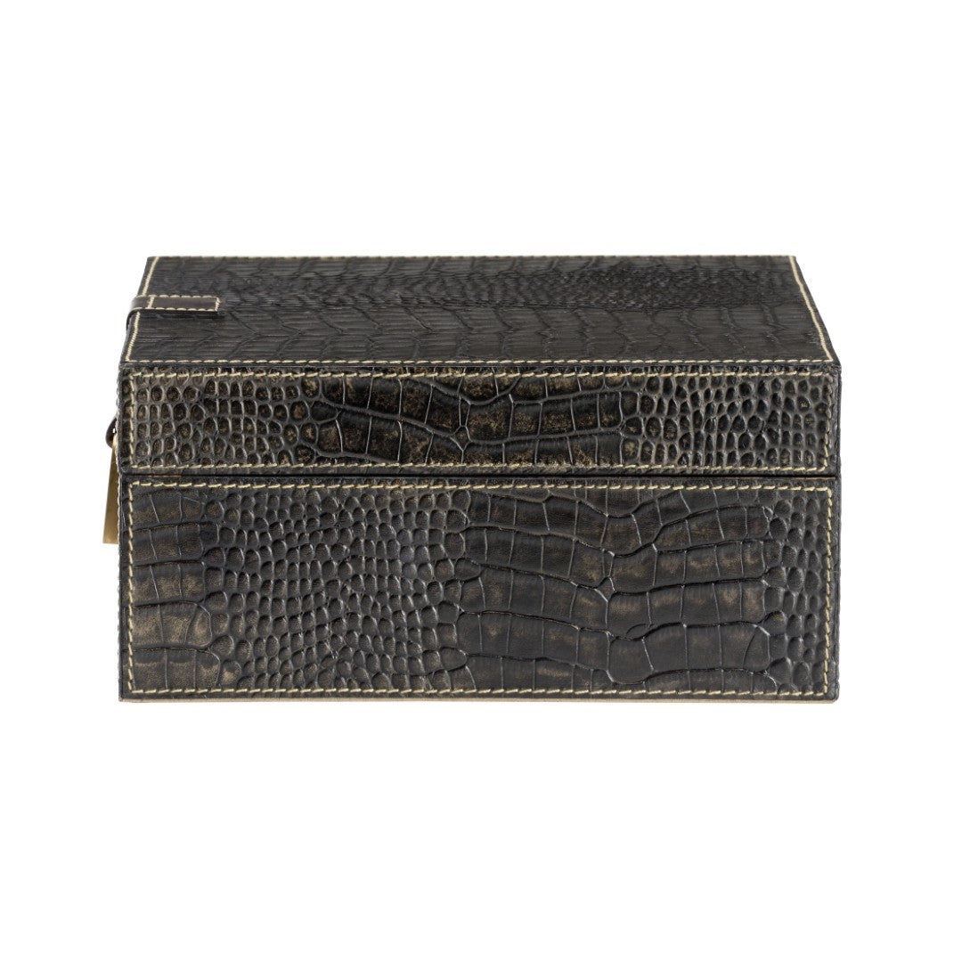 A sophisticated storage solution that combines classic crocodile-embossed texture with practical functionality. Ideal for organizing stationery, watches, jewelry, and everyday desk or tabletop items, this Croc Box adds a refined, cohesive touch to modern home or office decor while protecting contents with a soft felt interior.