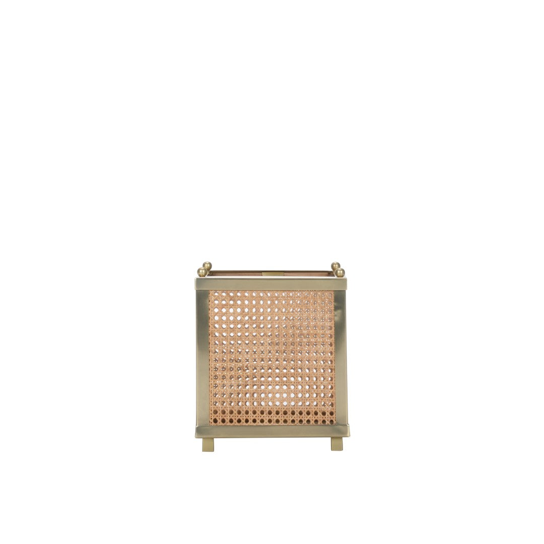 A refined blend of warm brass and natural cane, this Dunbar cachepot brings artisanal texture and timeless metallic luster to any room. Versatile enough to serve as a planter, hurricane cover, or decorative vessel, its tapered silhouette and hand-finished details add understated elegance to mantels, side tables, or entryway consoles.