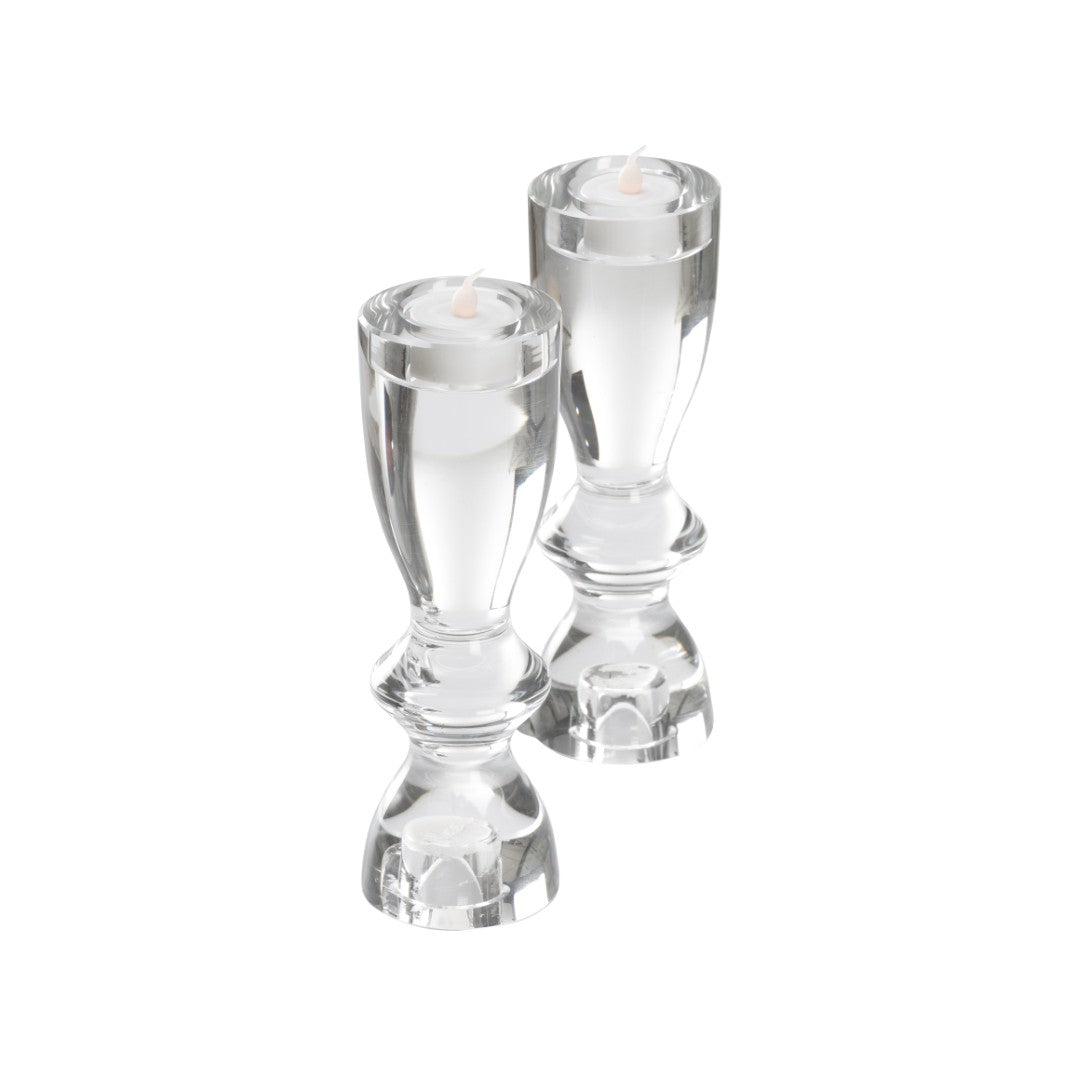 - Set of 2 matching clear crystal candlesticks for balanced styling