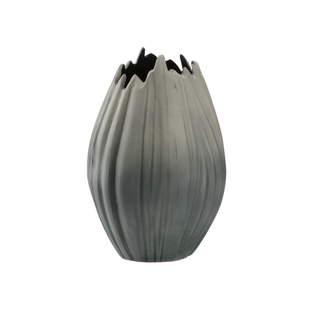 Elevate your tabletop or mantel with this elegant aluminum vase, finished in a soft matte guave tone. Its fluted sides and gently flowing opening create visual interest and catch light subtly, making it perfect as a standalone accent, grouped with other guave vases, or filled with fresh greenery or faux stems for a refined centerpiece.