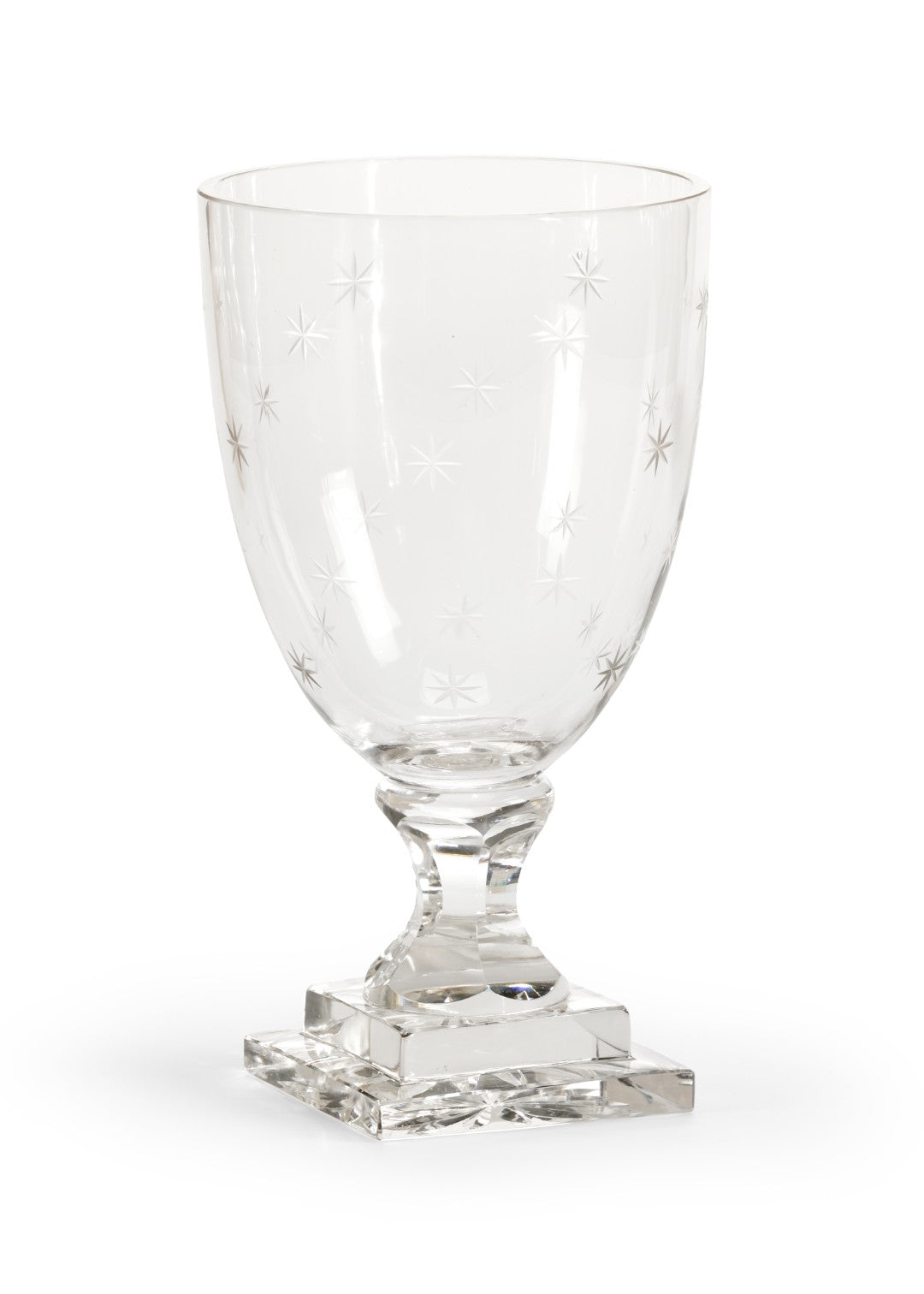 Bring a touch of celestial elegance to any room with this finely crafted crystal hurricane candleholder. Its hand-cut star motif refracts candlelight into a warm, shimmering glow, while a sturdy square base provides stability and protects surfaces from wax. Perfect for mantels, dining tables, or bedside accents, this clear hurricane blends classic charm with functional design.