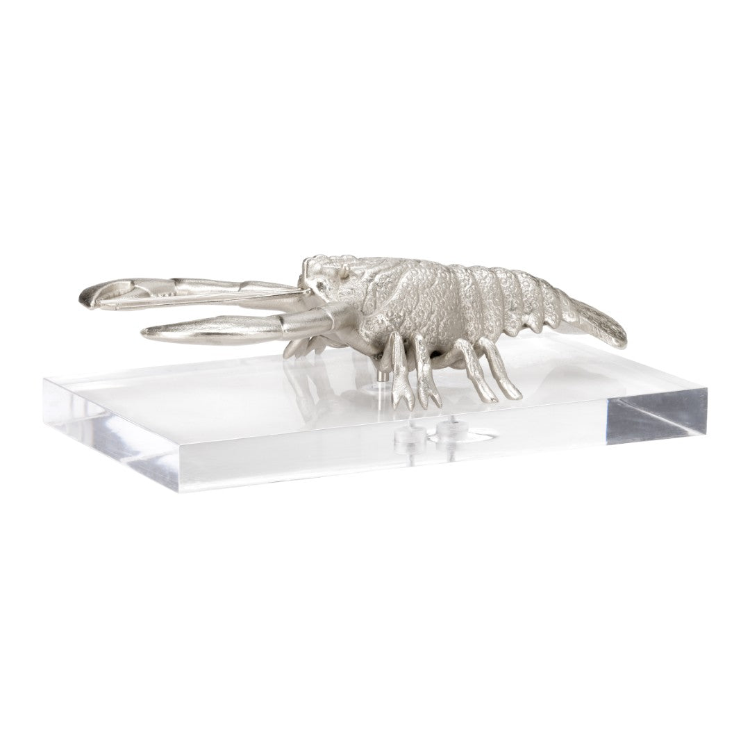 Add a touch of coastal charm to your home with Thibault, a refined lobster sculpture that complements cottage and nautical décor. Mounted on a clear acrylic base and finished in brushed nickel, this decorative piece brings subtle shine and sculptural interest to bookshelves, console tables, or mantel displays.