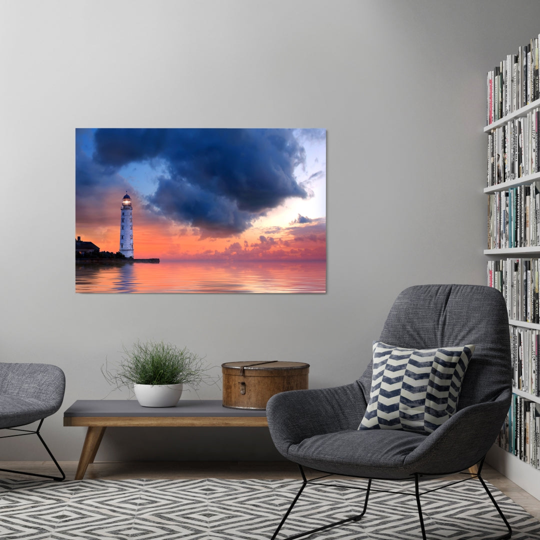 - Feature #1: Photographic print of a lighthouse at sunset with vivid colors that will add colors to your wall