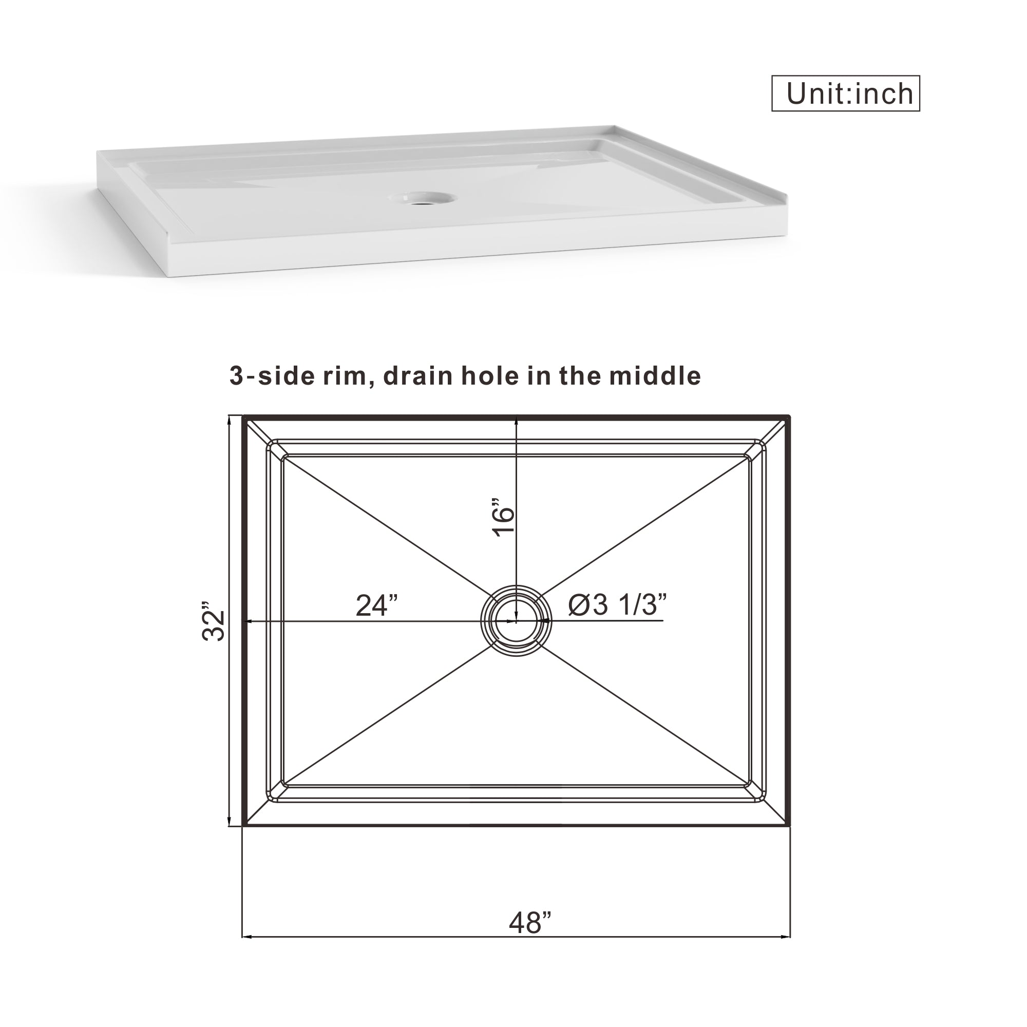 - Our set is an excellent choice for your bathroom,solving your choice dilemma. It features mainstream modern double sliding glass door paired with a classic white shower basin (no drain set). Stylish and beautiful, it can enhance your bathroom, making it more tidy and pleasing to the eye. 48” W x 72” H Semi-frameless shower door and 48“ x 32" shower base. Ideal for smaller bathrooms or corner shower spaces.