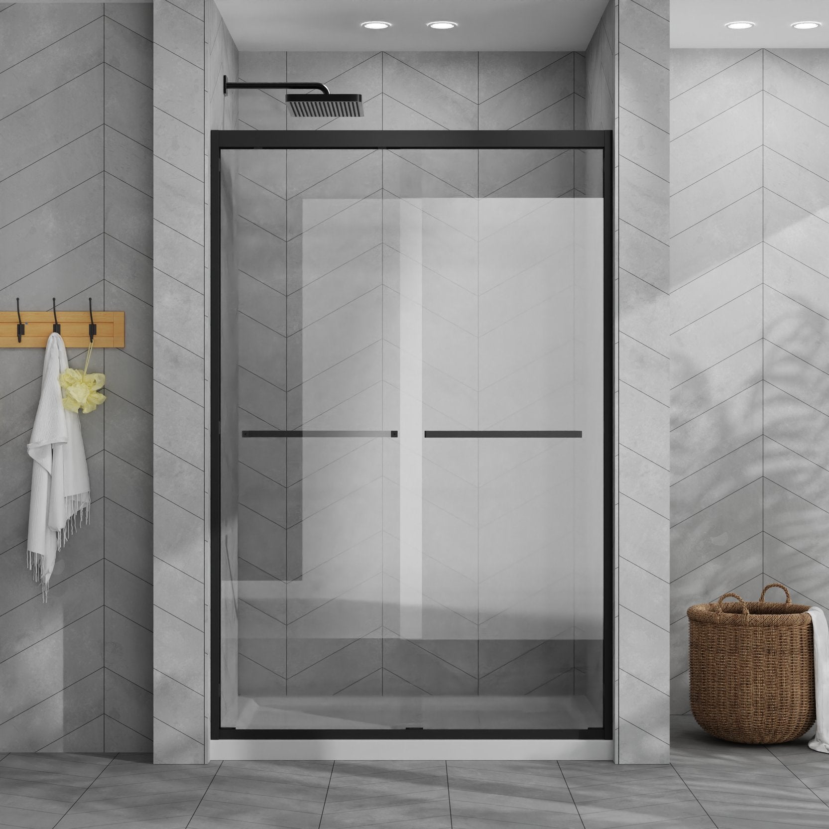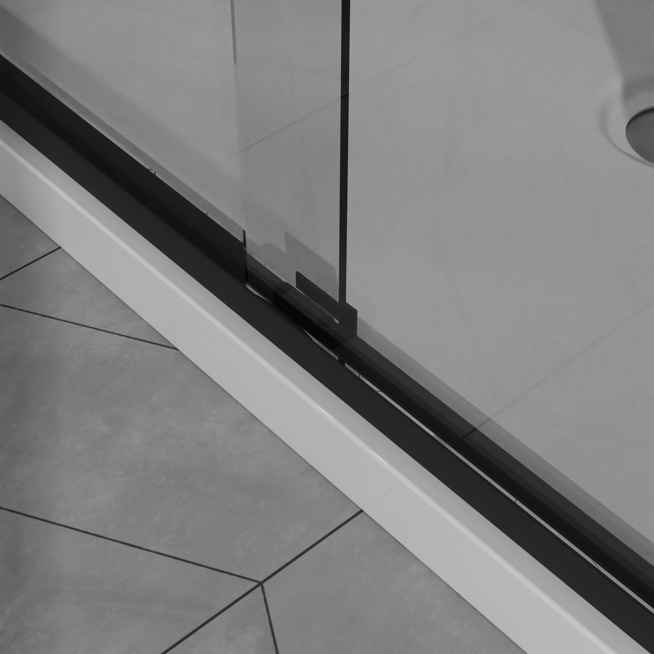 - Crafted from 1/4" (6mm) SGCC clear tempered glass, this sliding shower door ensures exceptional durability and safety. The glass is reinforced with an explosion-proof coating to prevent shattering, providing a safe and clear view for years.