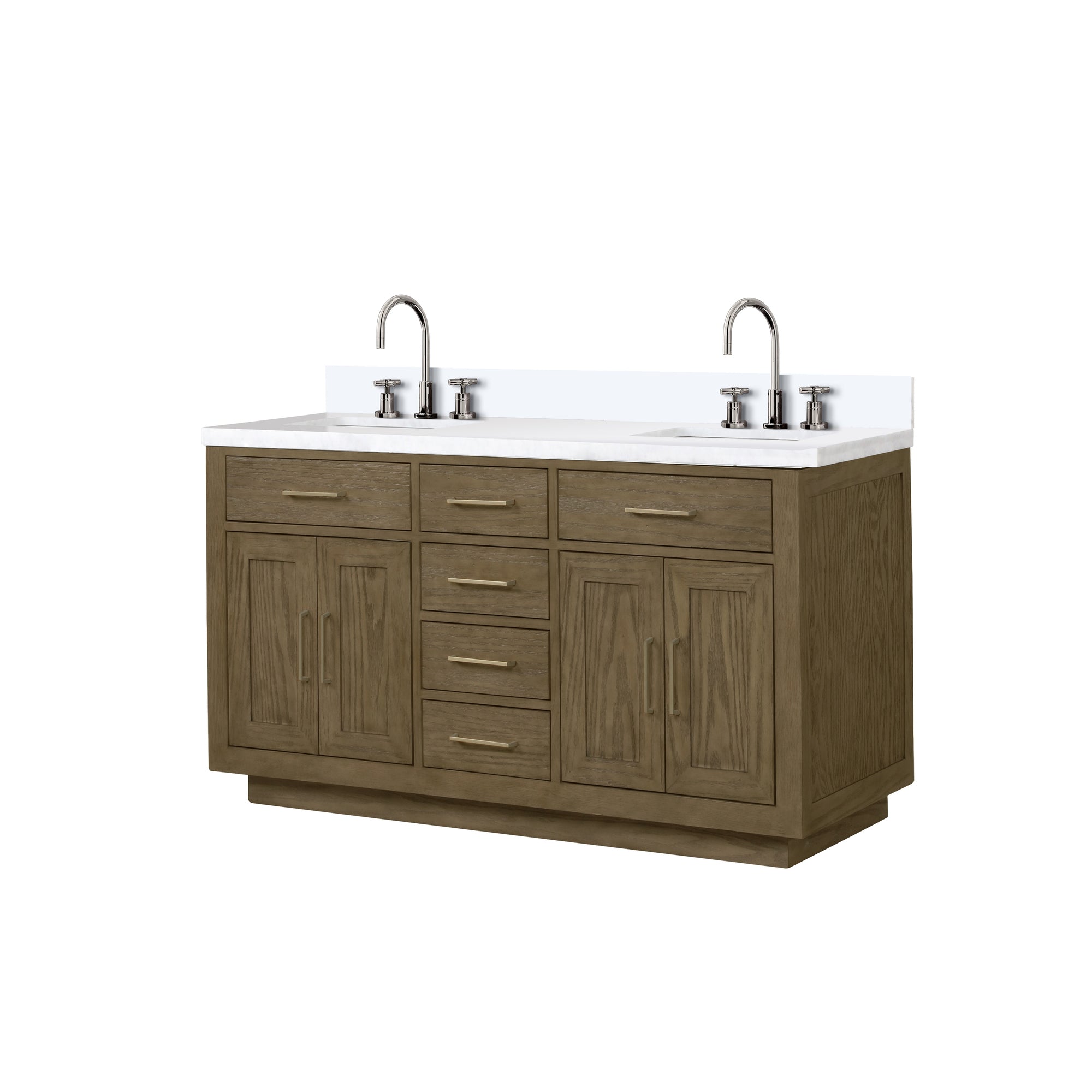 - Vanity Size: Double-basin design intended for a 60 in. W x 22 in. D installation footprint