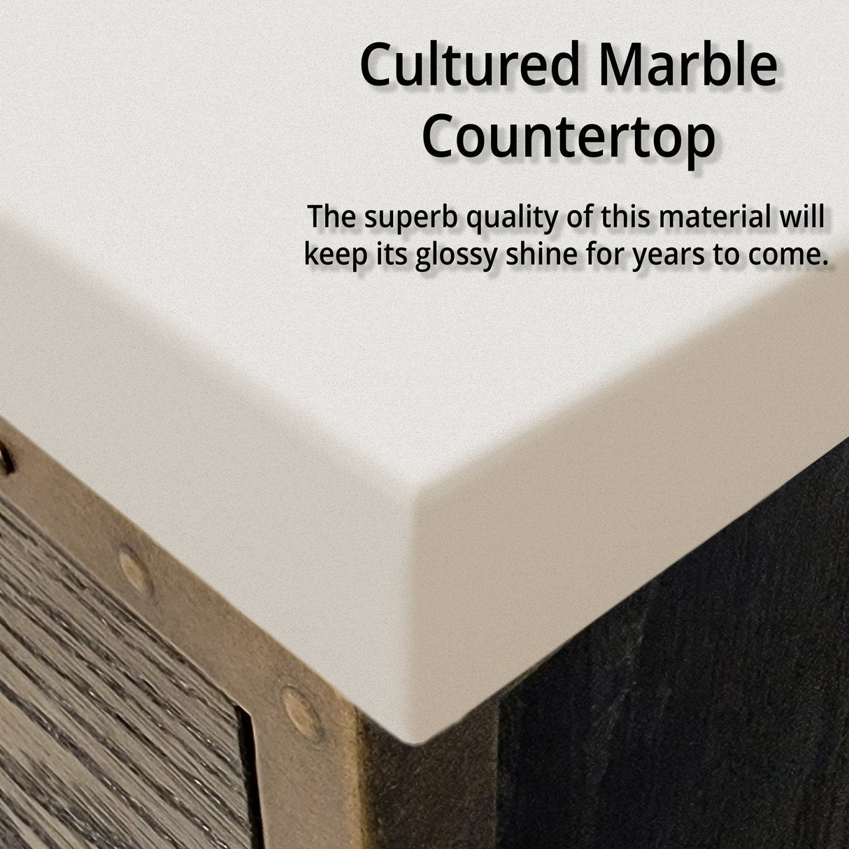 - Cultured Marble Top: Hand-finished, polished, and double-sealed for enhanced durability and stain resistance