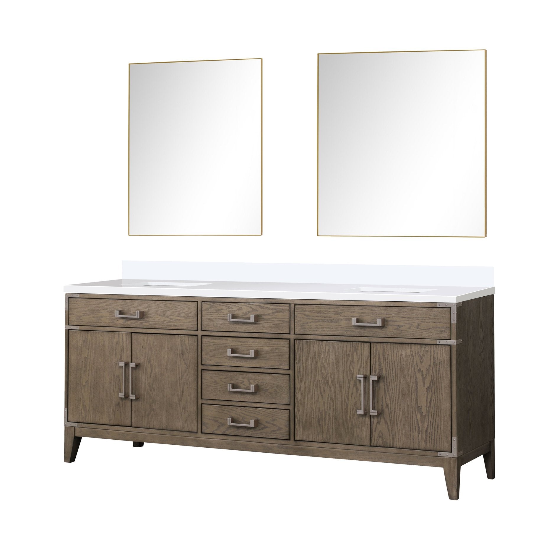 - Finish & Material: Grey oak wood finish for a contemporary, versatile aesthetic; cultured marble tops polished, hand-finished, and sealed twice for durability and stain resistance