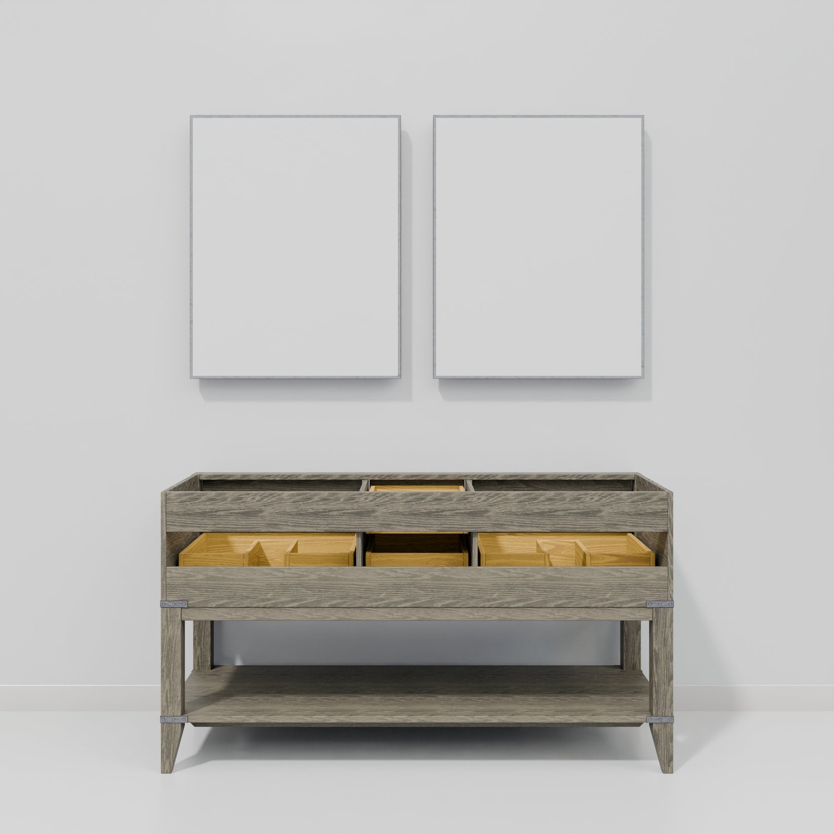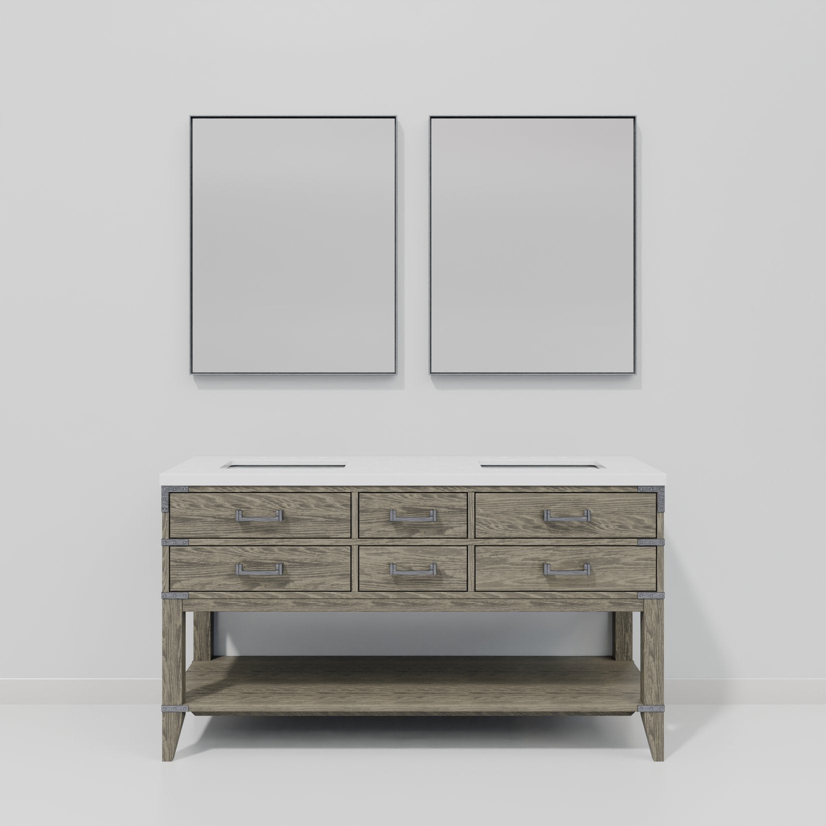 - Mirrors Included: Two mirrors included — each 28" W x 36" H — sized to coordinate perfectly with the double-sink layout.