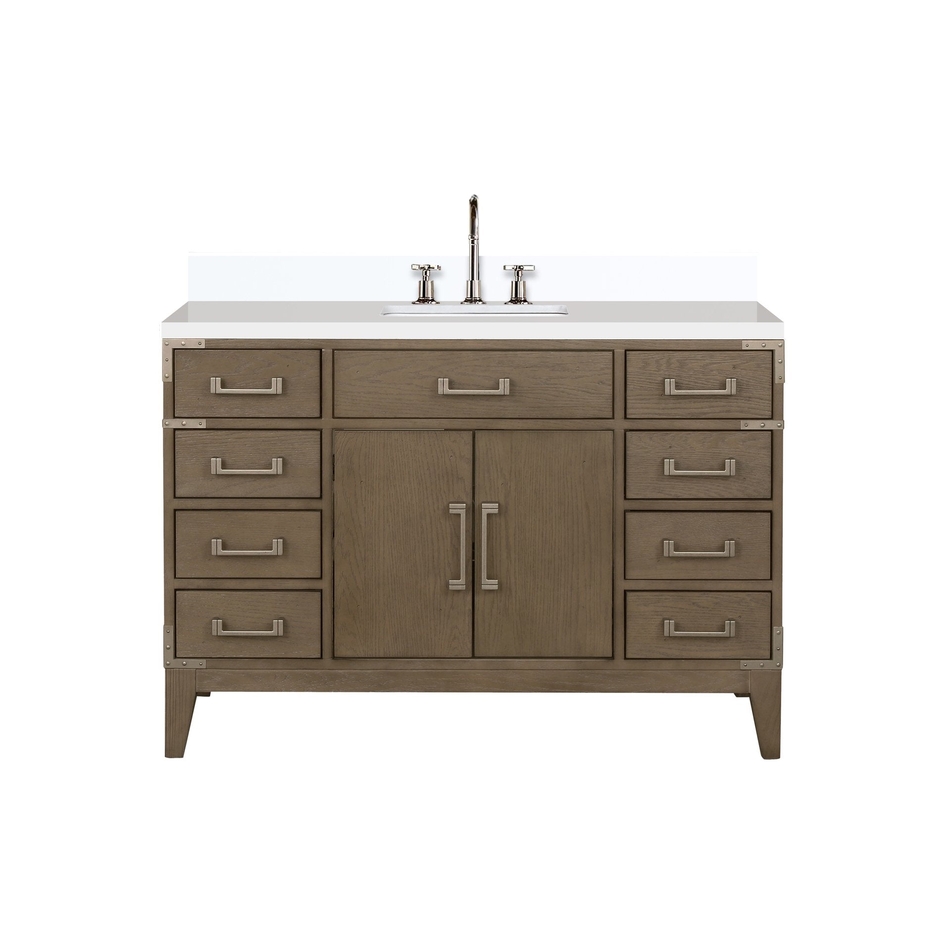 Upgrade your bathroom with a stylish and functional vanity that combines durable craftsmanship with ample storage and a refined finish. This Grey Oak single-sink vanity pairs a hand-finished cultured marble top with a complete faucet set, delivering both an attractive focal point and practical daily performance.