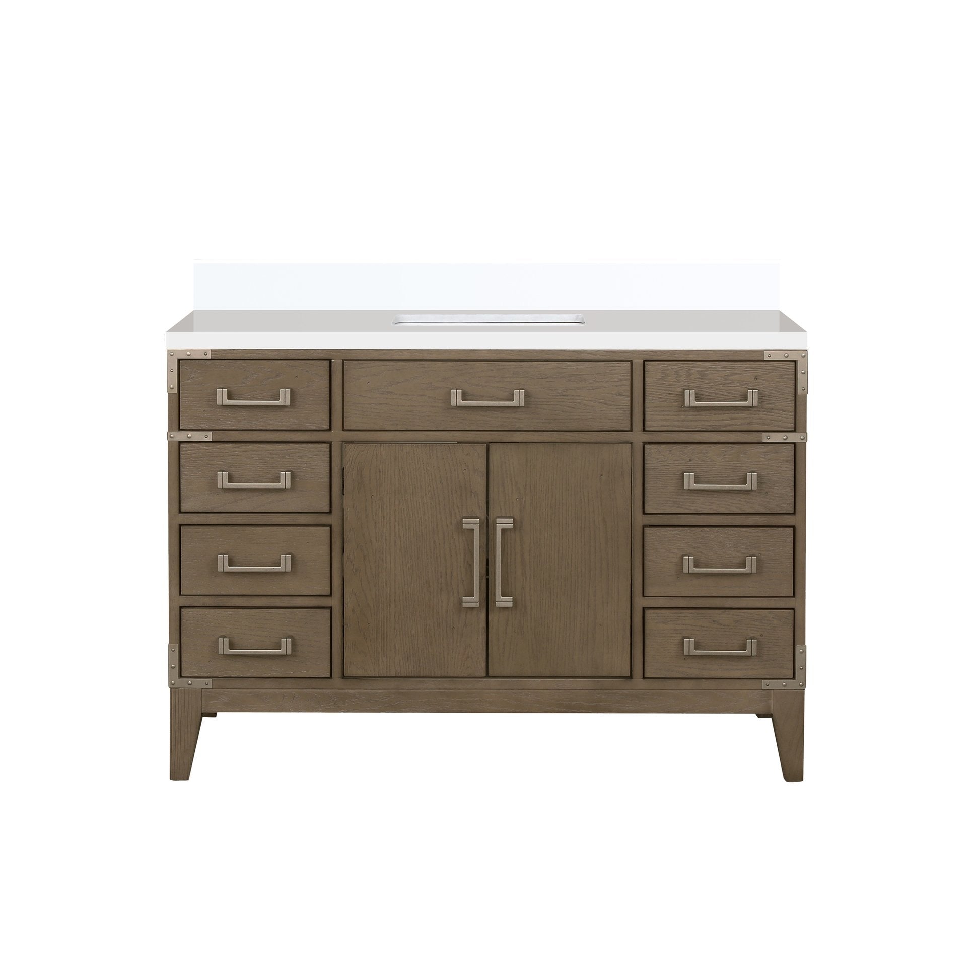 Upgrade your bathroom with a stylish and functional grey oak single vanity that combines durable construction with a sleek cultured marble top. Thoughtfully designed storage and soft-close hardware make organization effortless, while the pre-drilled countertop simplifies faucet installation—ideal for modern bathrooms that need both form and function.