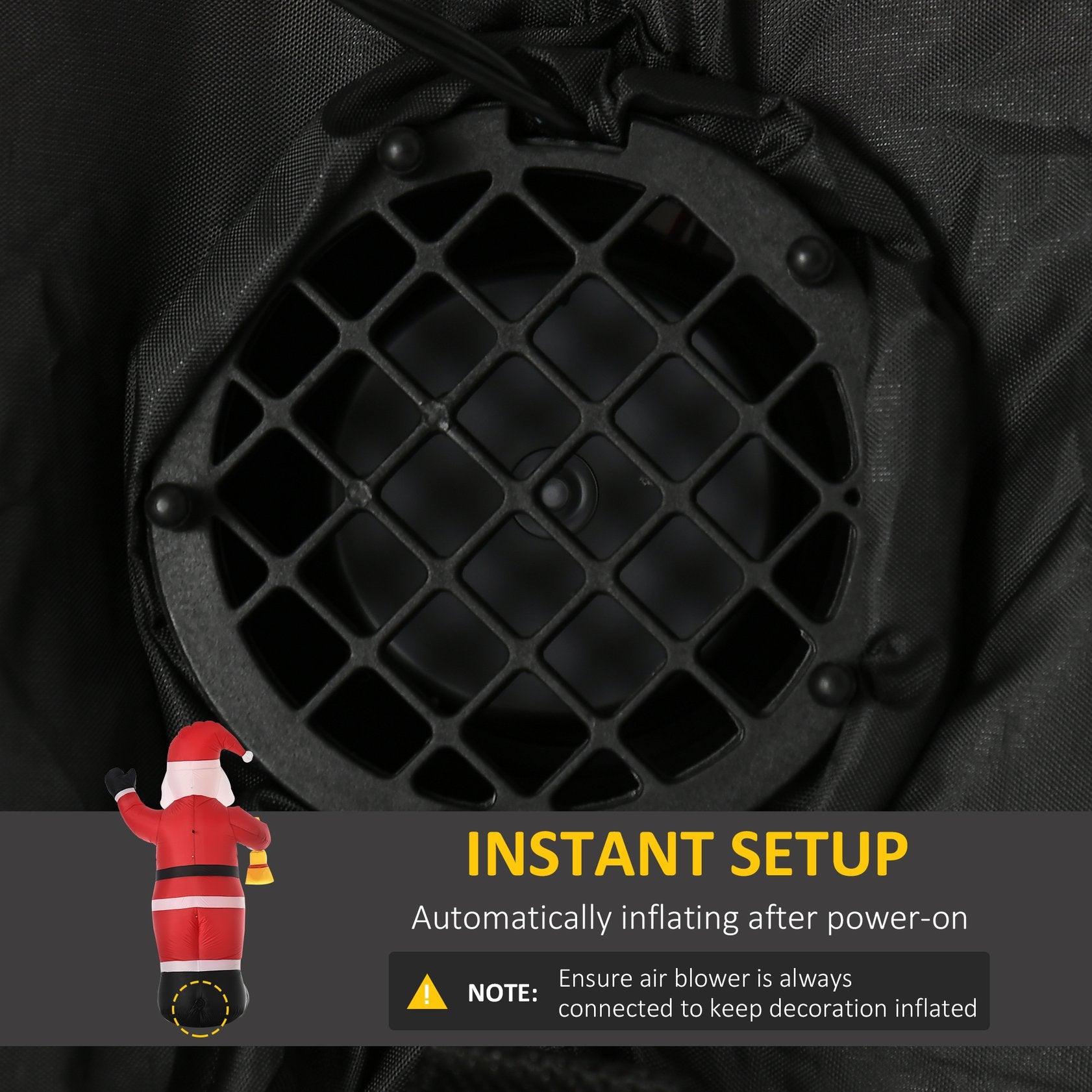 - Instant Set-Up: The whole Christmas decoration display self-inflates in minutes when plugged into any standard electrical outlet and deflates quickly into a compact unit for storage until next holiday season.