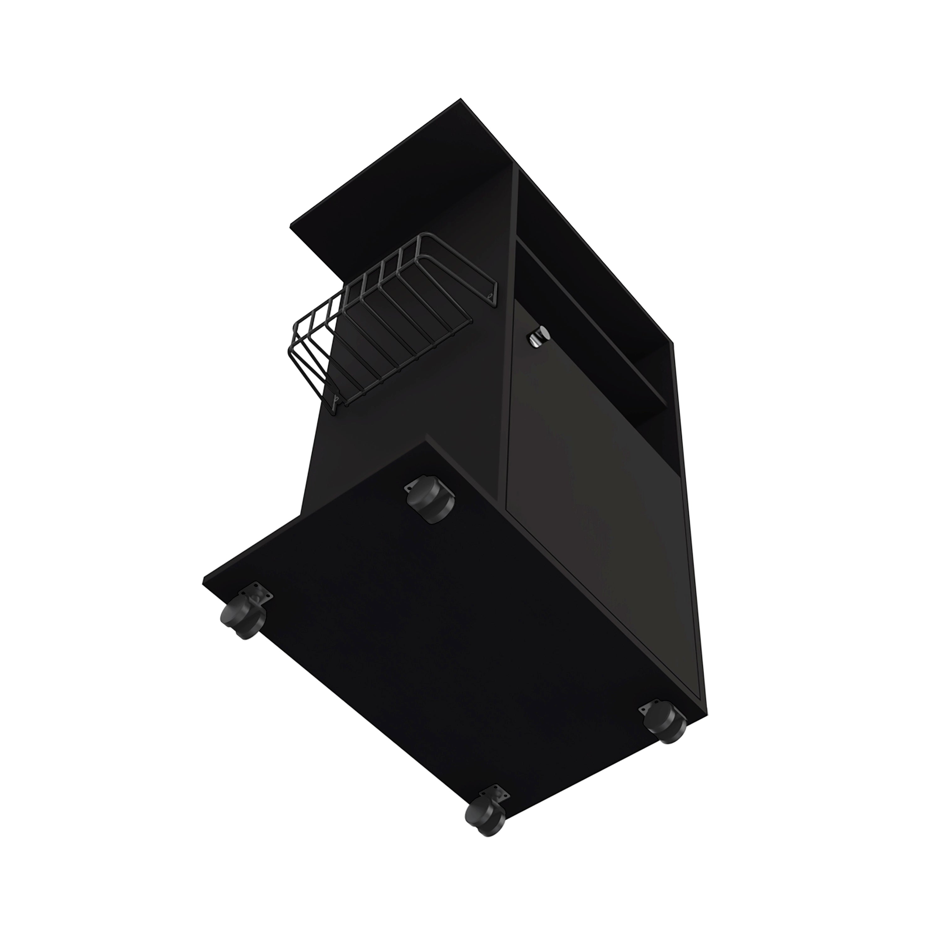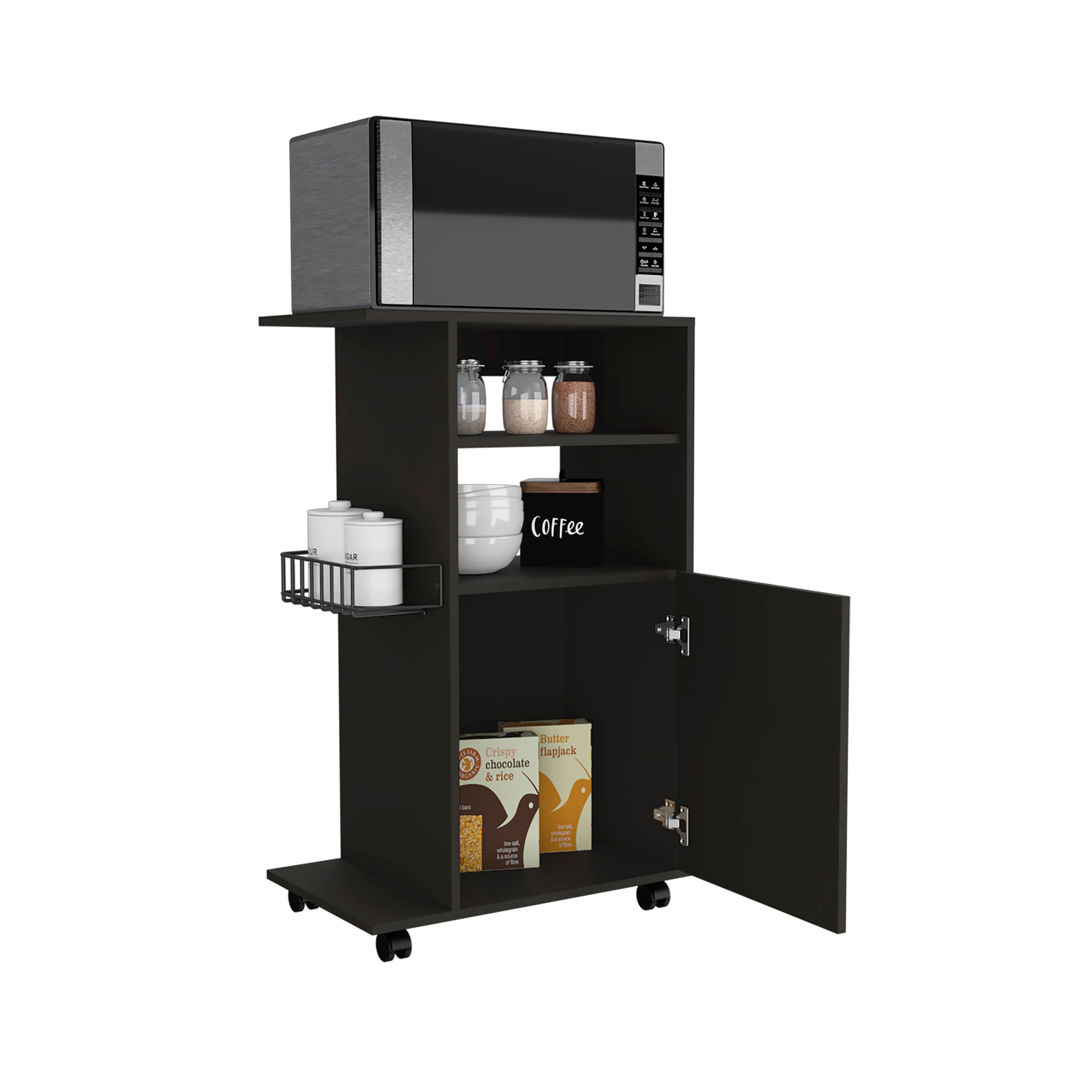Add versatile storage and mobile workspace to your kitchen with this sleek black wengue-finish cart. Built for everyday use, it provides a dedicated microwave countertop, enclosed storage, and smooth mobility—ideal for small kitchens, apartments, or as an extra prep station. Durable particle board construction and a compact footprint make it a practical, stylish addition to your home.