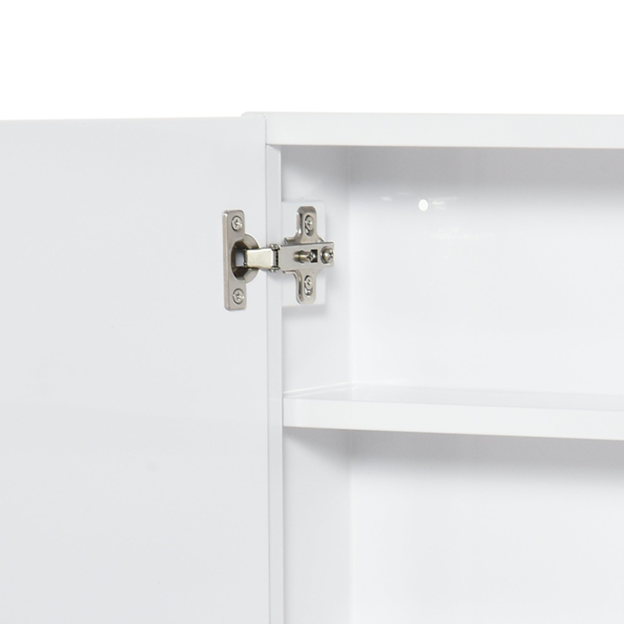 - Double mirrored doors: Two full‑height mirror panels conceal contents for a tidy appearance and offer a functional vanity surface for grooming.