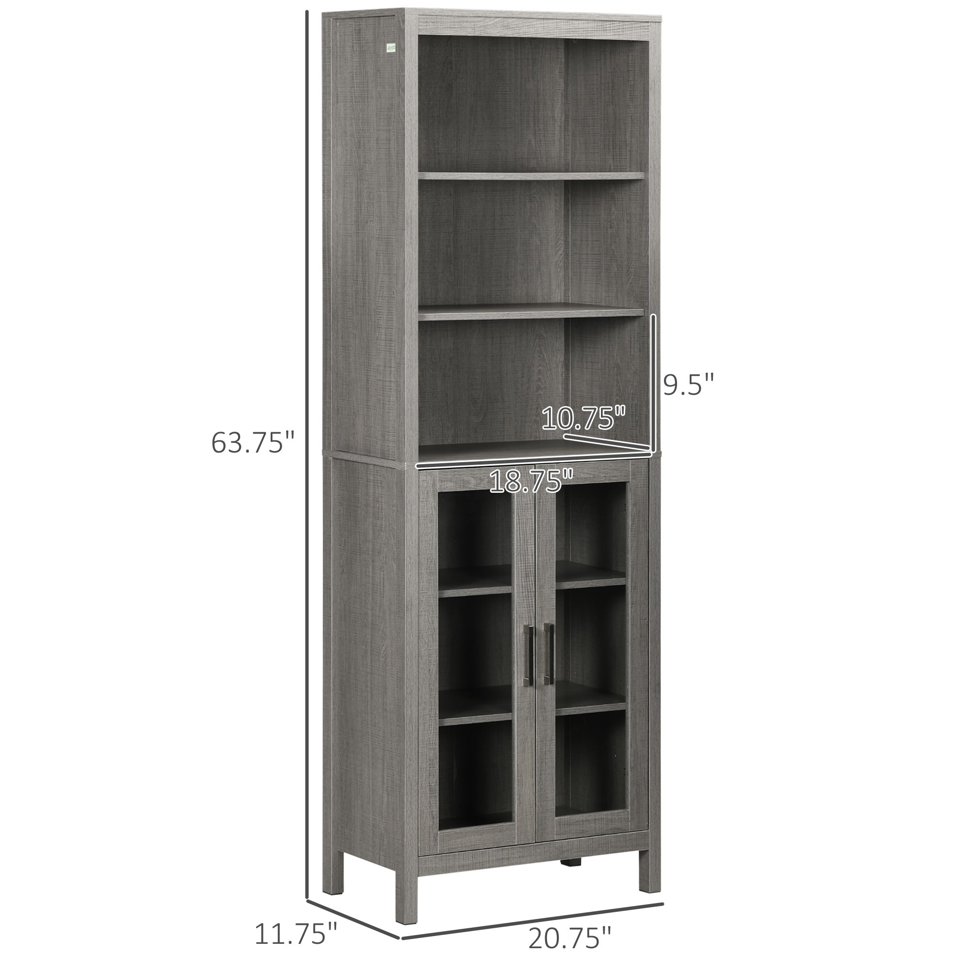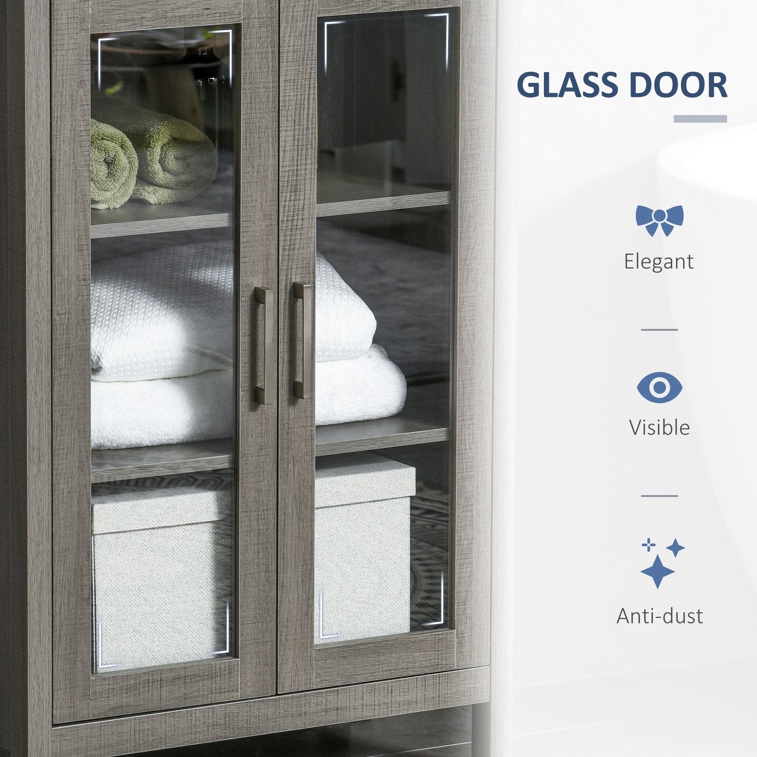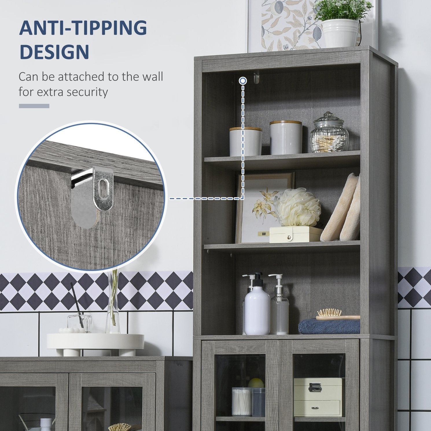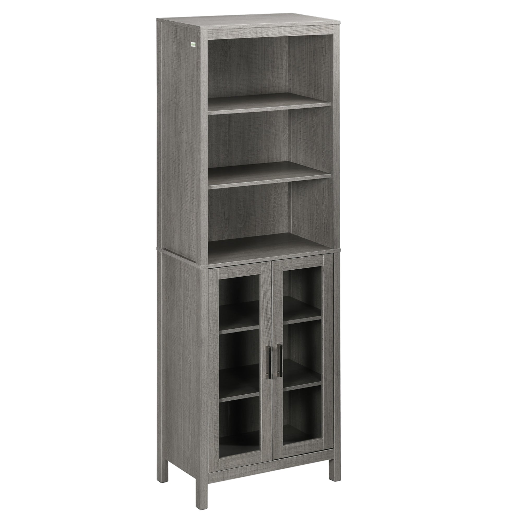 Keep your bathroom organized without sacrificing style. This tall, narrow linen tower combines open shelving with a glass-front cabinet to display frequently used items while concealing toiletries and cleaning supplies. Built with a gray wood-grain finish and aluminum-alloy handles, it offers a modern look that fits small spaces and complements a variety of décor styles.