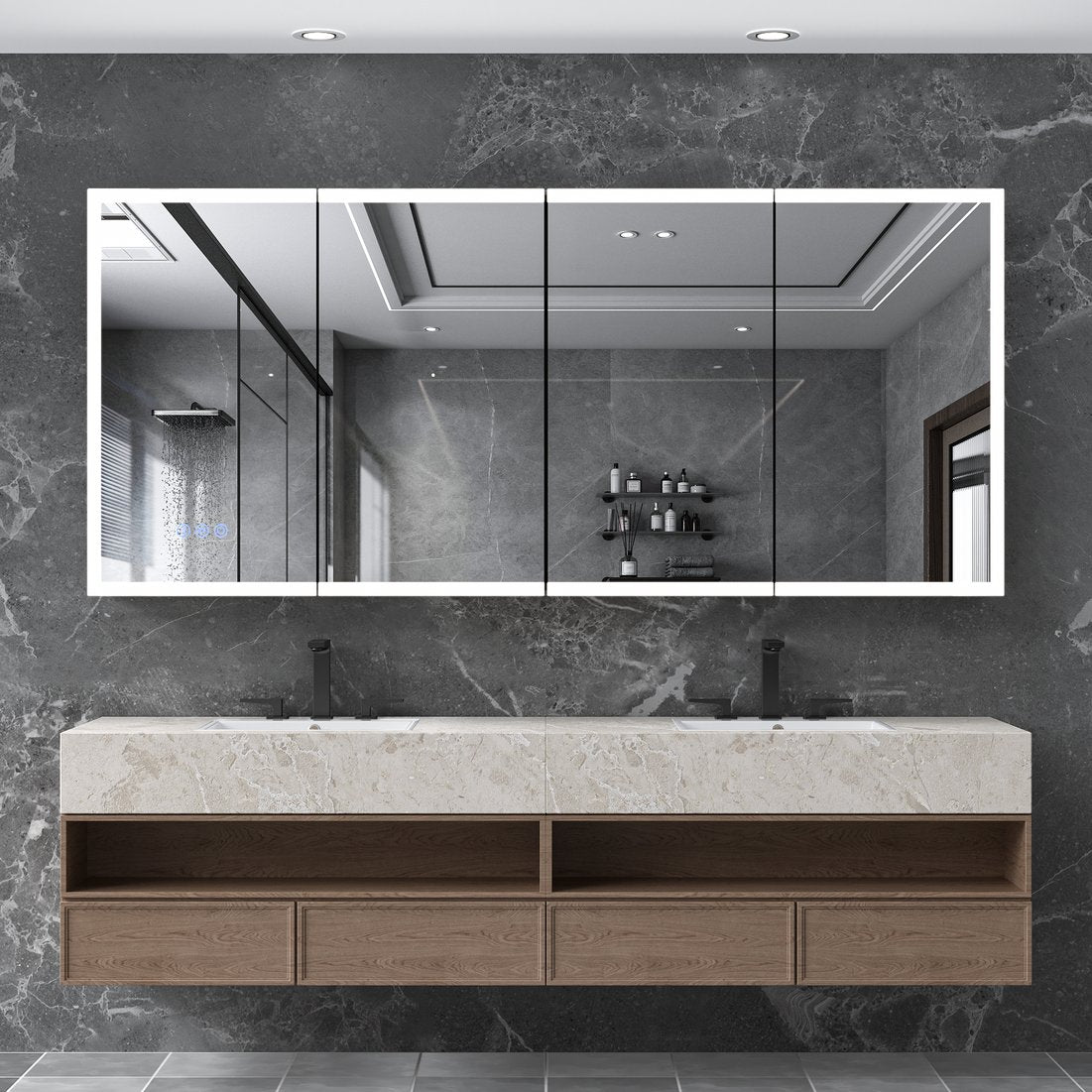 - LED Lighted Medicine Cabinet with Mirror, 72*32Inches Bathroom Mirror Cabinet with Lights,Recessed or Wall Mounted, 3 Color TemperaturesAnti-Fog