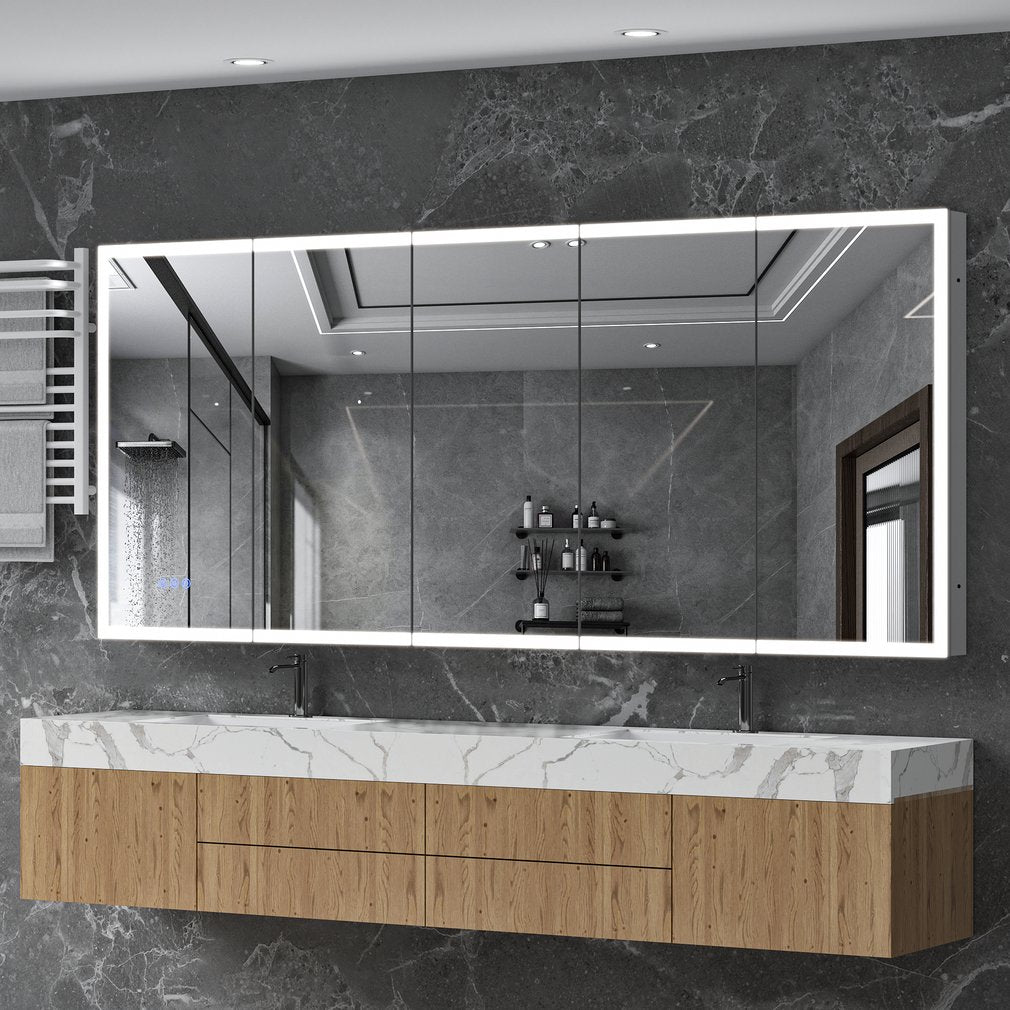 - LED Lighted Medicine Cabinet with Mirror, 84*36Inches Bathroom Mirror Cabinet with Lights,Recessed or Wall Mounted, 3 Color TemperaturesAnti-Fog